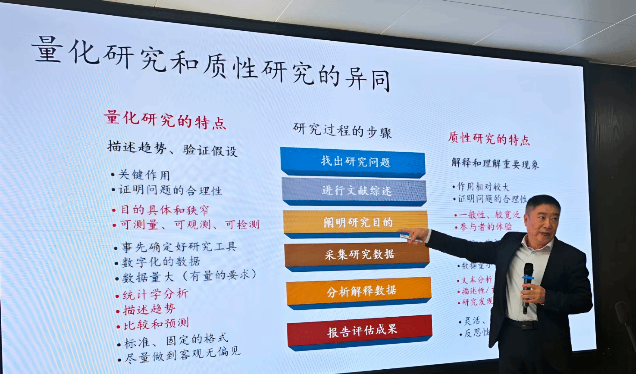 在研究方法阐释环节,李树英教授进一步解析了教育现象学在数据采集、主题提炼与意义解析中的具体应用,重点强调“悬置”与“还原”方法对洞察教育现象与情境的关键作用,引发在场师生对教育现象学实践价值的深度思考与讨论。