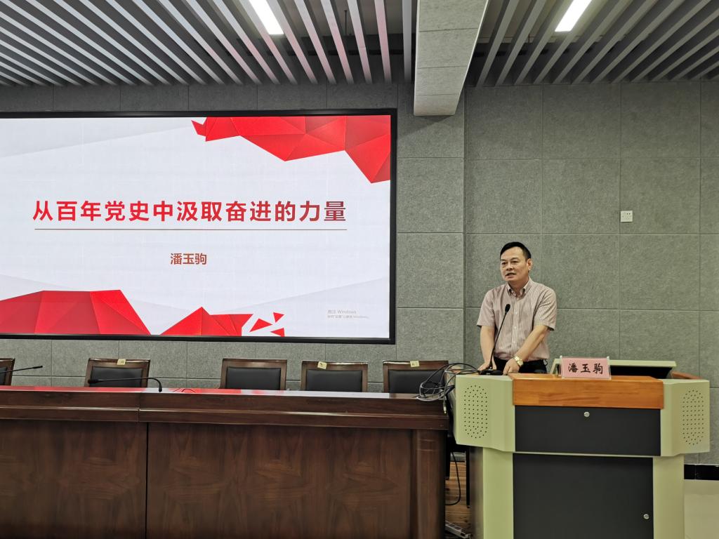 全院教职工大会后,学院召开教职工理论学习会,开展党史学习教育专题学习。校党委委员、宣传部部长潘玉驹教授作题为《从百年党史中汲取奋进的力量》的报告。