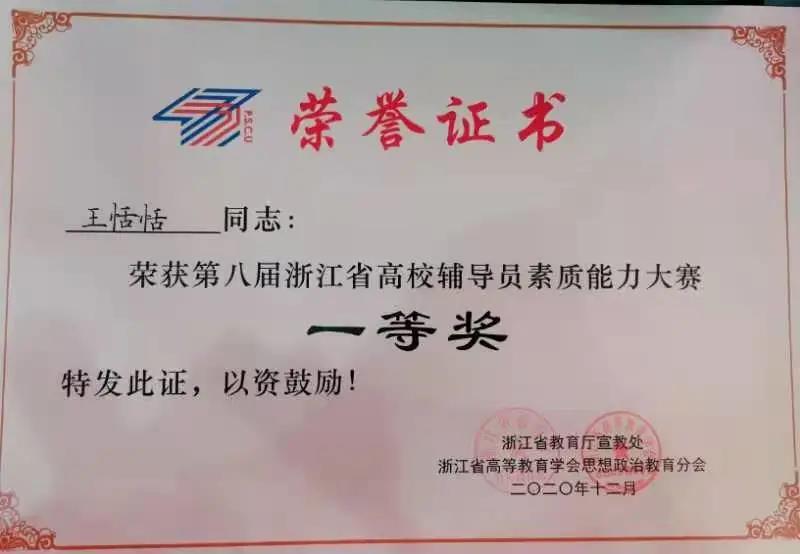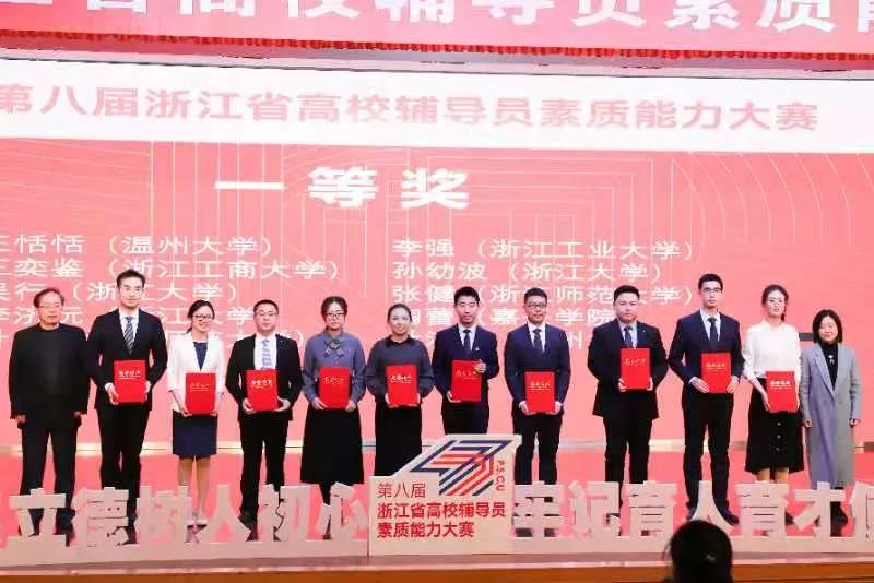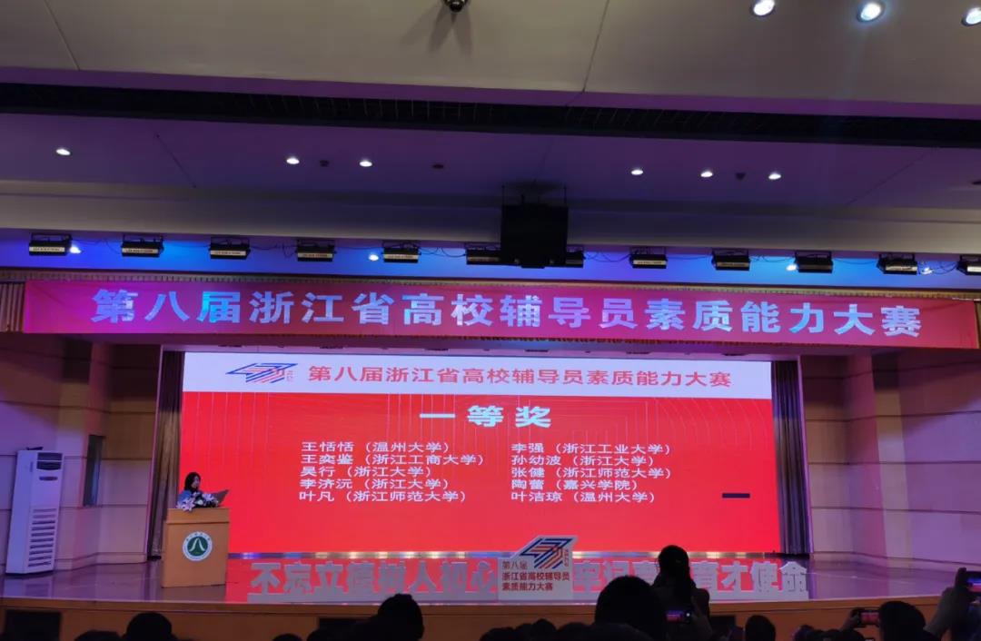 12月1日至3日,第八届浙江省高校辅导员素质能力大赛在浙江师范大学举行。本届大赛,浙江省共87所高校的106位辅导员参加了比赛,有150余位领队参加观摩。经过基础知识测试、案例研讨和谈心谈话三个环节的激烈角逐,学校两位参赛辅导员均斩获一等奖,学校获优秀组织奖。其中,日本最新av 辅导员王恬恬老师以扎实的理论基础、专业的能力素养和丰富的工作沉淀荣获全场第一,展现了日本最新av 辅导员出色的职业能力与个人风采。