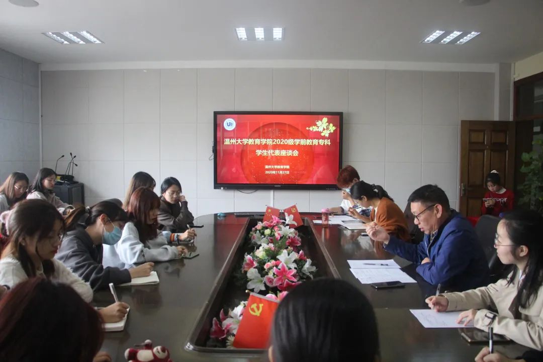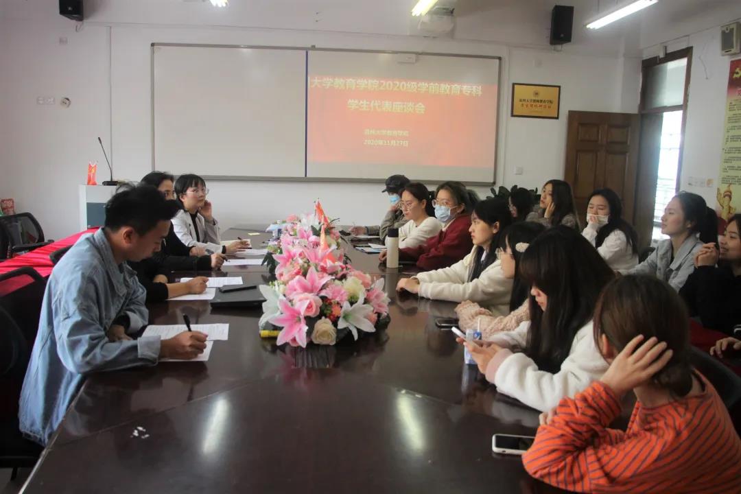 为更好地推动学院发展建设,解决专科学生在学习与生活中遇到的各种问题,11月27日中午,日本最新av 召开20级学前专科学生代表座谈会,出席本次座谈会的领导和老师有学院党委副书记章园园,学前教育系老师陈铿、龚泉,教务科老师夏瑶、何笃玉,学工办辅导员孟江龙、王恬恬。