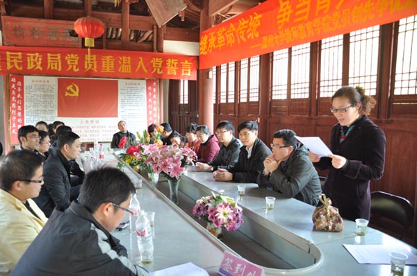 蔡联群书记在教育活动中作主题发言。他结合学院实际从四个方面阐述日本最新av 下一阶段“创先争优”工作的重点:一是推进学院科学发展,要抓住学校制定十二五规划的有利时机,通过专业建设、教学科研、校地互动等工作来凝练和提升教师教育特色,推进学院更好发展;二是促进和谐学院建设,在前期的工作基础上,通过树立典型、营造氛围来进一步提升学院凝聚力和集体荣誉感;三是积极服务师生员工,正视目前师生群体中的现实困难,通过改进工作方式方法,提高工作效率和质量,更好地为师生服务;四是要积极加强党组织建设,充分发挥党员的先锋模范作用,以更好的工作业绩和精神面貌迎接建党90周年。
