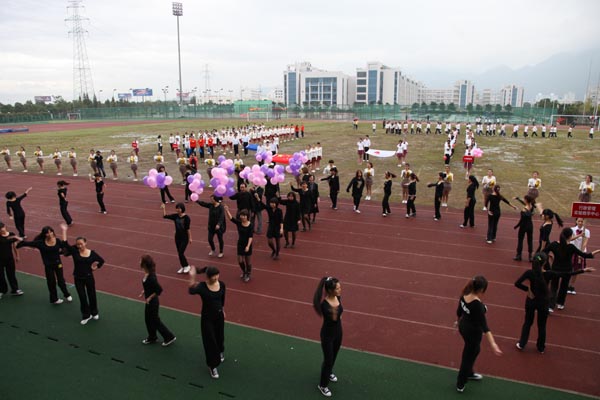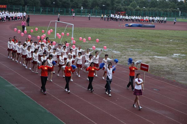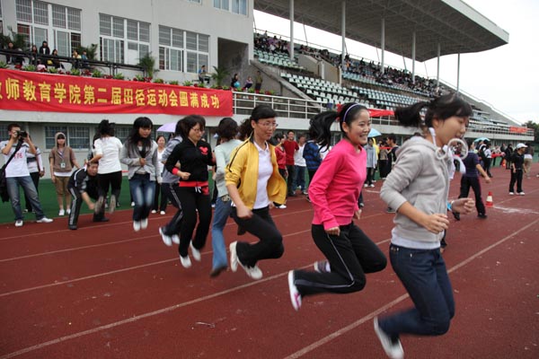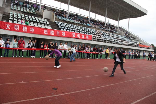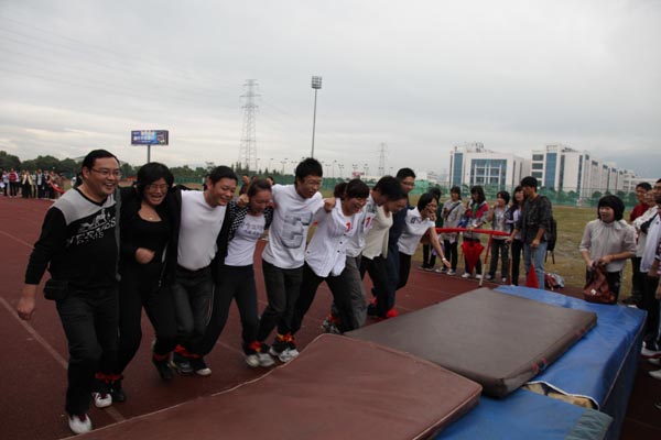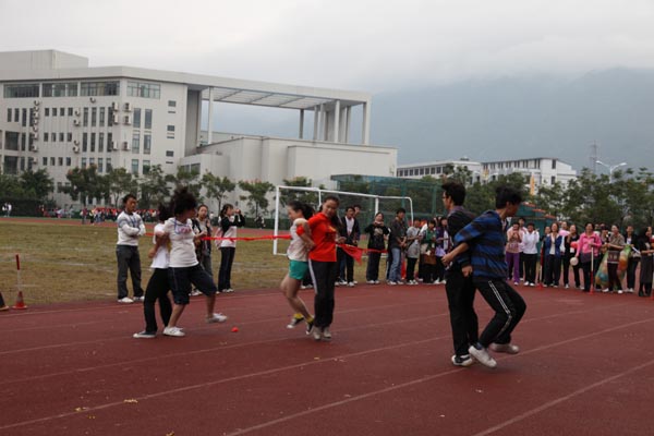 细雨飘渺中,参赛的运动员们发扬了“更高 ,更快,更强”的体育精神,用自己的实力和热情赛出水平、赛出风格,留下了一个个精彩而难忘的画面。尤其是趣味项目的比赛,更是全体师生热情参与,默契配合,例如“十人九足”、“双龙戏珠”等运动项目,更是大大促进了师生之间的认识与沟通,在体育精神的感召下,大学生们发现,原来讲台上