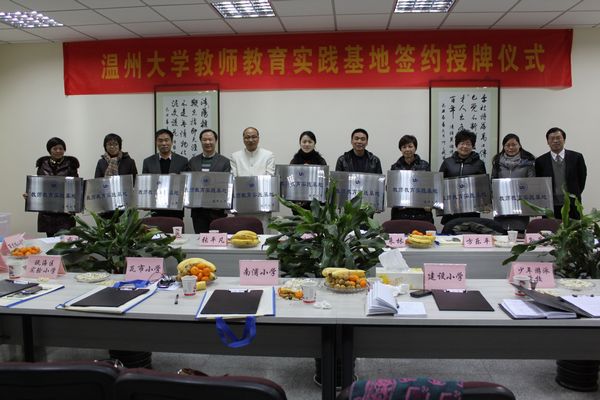 与温州市广场路小学、建设小学、蒲鞋市小学、瓦市小学、城南小学、瓯海实验小学等10所温州市知名小学举行教师教育实践基地签约仪式,副校长叶世祥、瓯海区教育局政工科副科长张平凡以及教师教育基地和教务处、教师日本最新av