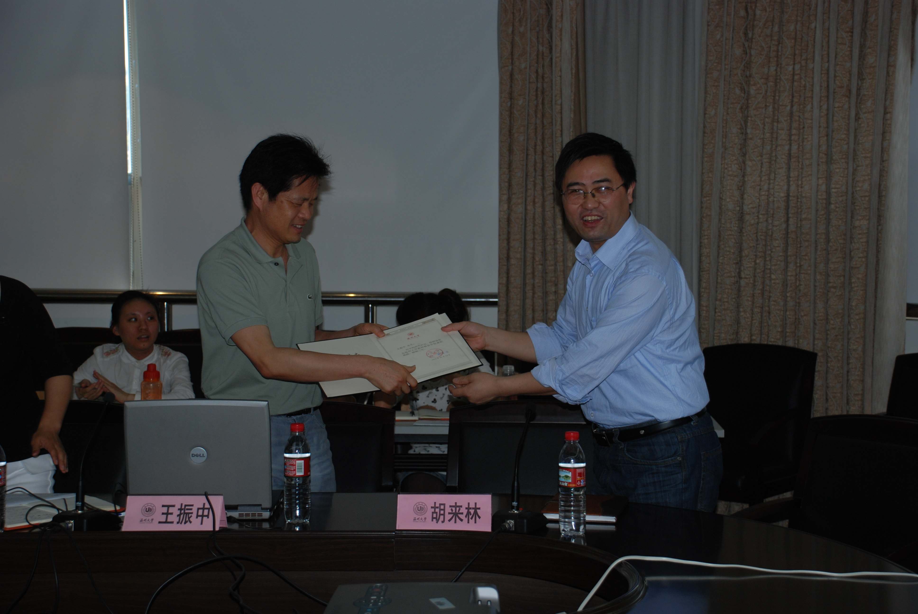 胡来林院长向王振中院长递交了聘书,聘请王振中院长为我校兼职教授。