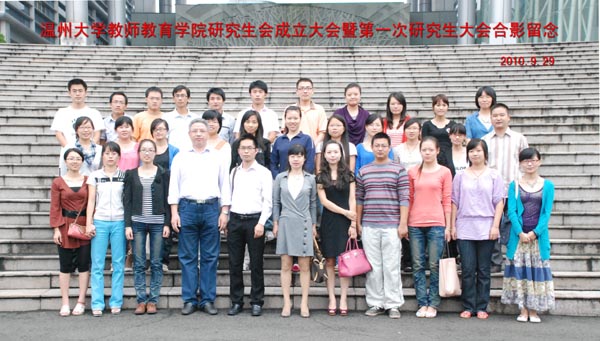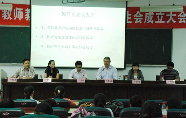 与会代表与领导嘉宾合影留念后,会议进入正式议程。来自08课程与教学论的研究生郭保林主持大会。大会分别讨论了研究生会委员选举办法、机构设置与职能、研究生会章程等文件,并民主推选了郭新文、苏静、马山力、魏秋羽、胡玮、邓丹、董梅等7位同学为第一届研究生会委员。