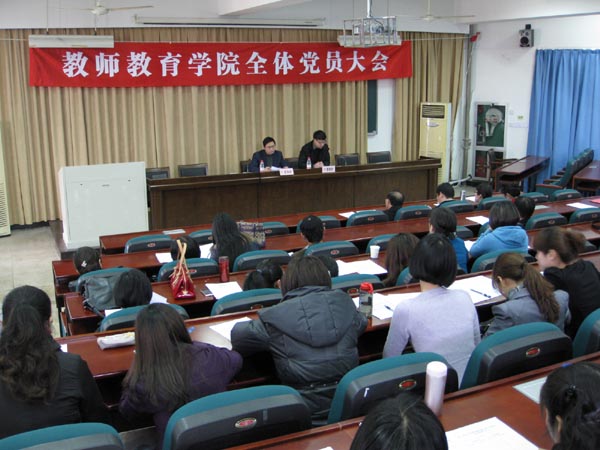 全体教工党员大会在北校3-101教室召开,胡来林院长、蔡联群书记出席大会并在主席台就座,全院66名教工党员参加会议。