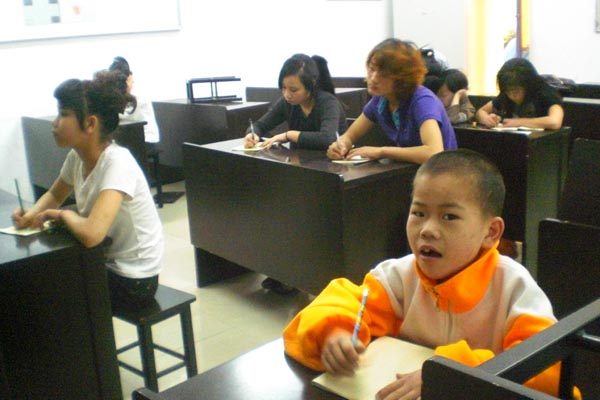 此次上课的内容是教写字和简笔画。“知心姐姐”们先在黑板上抄了一首《陋室铭》,将难认的字标上了拼音,接着让孩子们一个字一个字地抄下来。有些孩子没什么基础,连最简单的笔顺也不会写,志愿者们就耐心的教他们认拼音,一笔一划的带着他们写过去。当然,有些孩子比较大了,她们很快地抄完了这首《陋室铭》。等写得差不多时,“知心姐姐”们一句一句地教他们念,鼓励他们都能背下来。毕竟知识需要积累,多一些知识总是有用的。