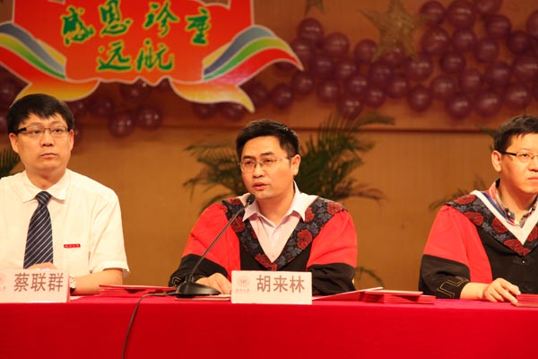 教育技术系张新立代表教师发言。她深情回顾了与毕业生们相处的1400多个日子,表达了一名教师对学生的真挚情感。积财千万不如学问在身,她希望大家能继续学习,树立永不言弃的信心,创造人生辉煌,为母校争光。