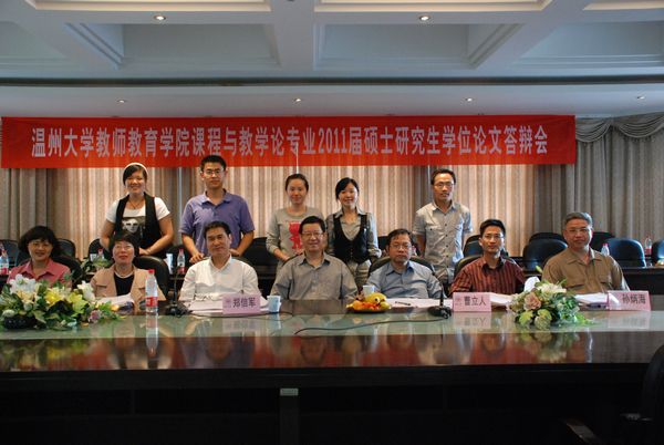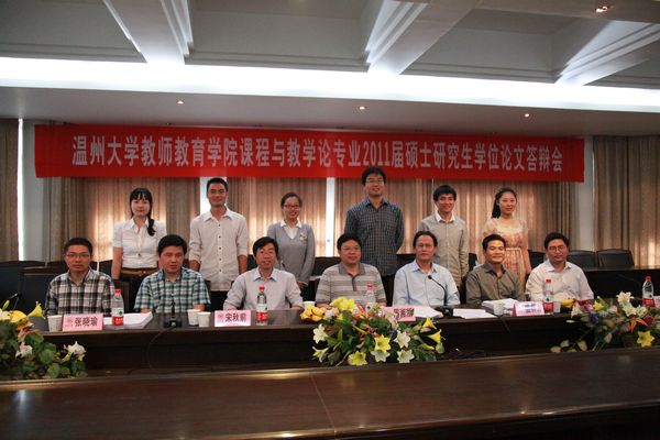 胡来林、潘玉进、郑信军、徐速、张文杰教授及张晓瑜副教授组成,朱倩云、万荣根分别担任答辩委员会秘书。参加本次答辩会的2011届硕士研究生分别来自教育心理学、课程论、教学论、信息技术教育等方向。09级和10级全体研究生参与旁听。