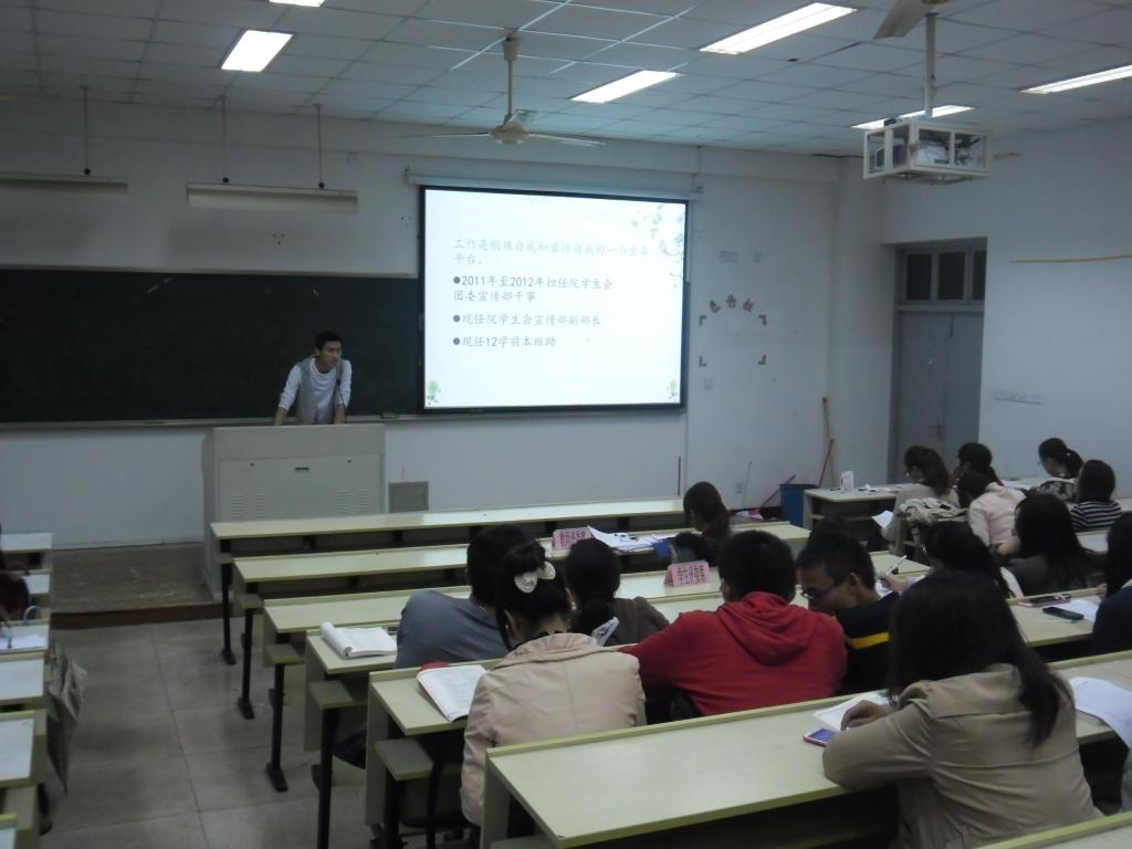 在教育楼401、402教室举行了2011/2012学年“学习标兵”的评选活动。有二十四名来自不同专业、年级的优秀学子们参与此次评选。本次评比活动由学生科胡仲仲老师和来自各班的学生代表担任评委。