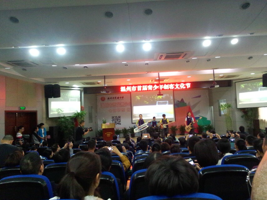 在开幕式上,温州市教育局副局长给温州实验中学授牌“温州市青少年创客基地”,宣告温州市青少年创客教育协会正式成立,温州大学教育信息化研究所胡来林教授等三人被聘为温州市青少年创客教育协会特邀顾问。文化节上,温州市实验中学学生们拍摄制作的微电影,戴小红老师介绍了实验中学结合信息技术教育课程开展的创客教育教学与活动的基本情况,“新车间”创始人李大伟、同济大学设计与创意学院的孙效华教授等做了专题报告。