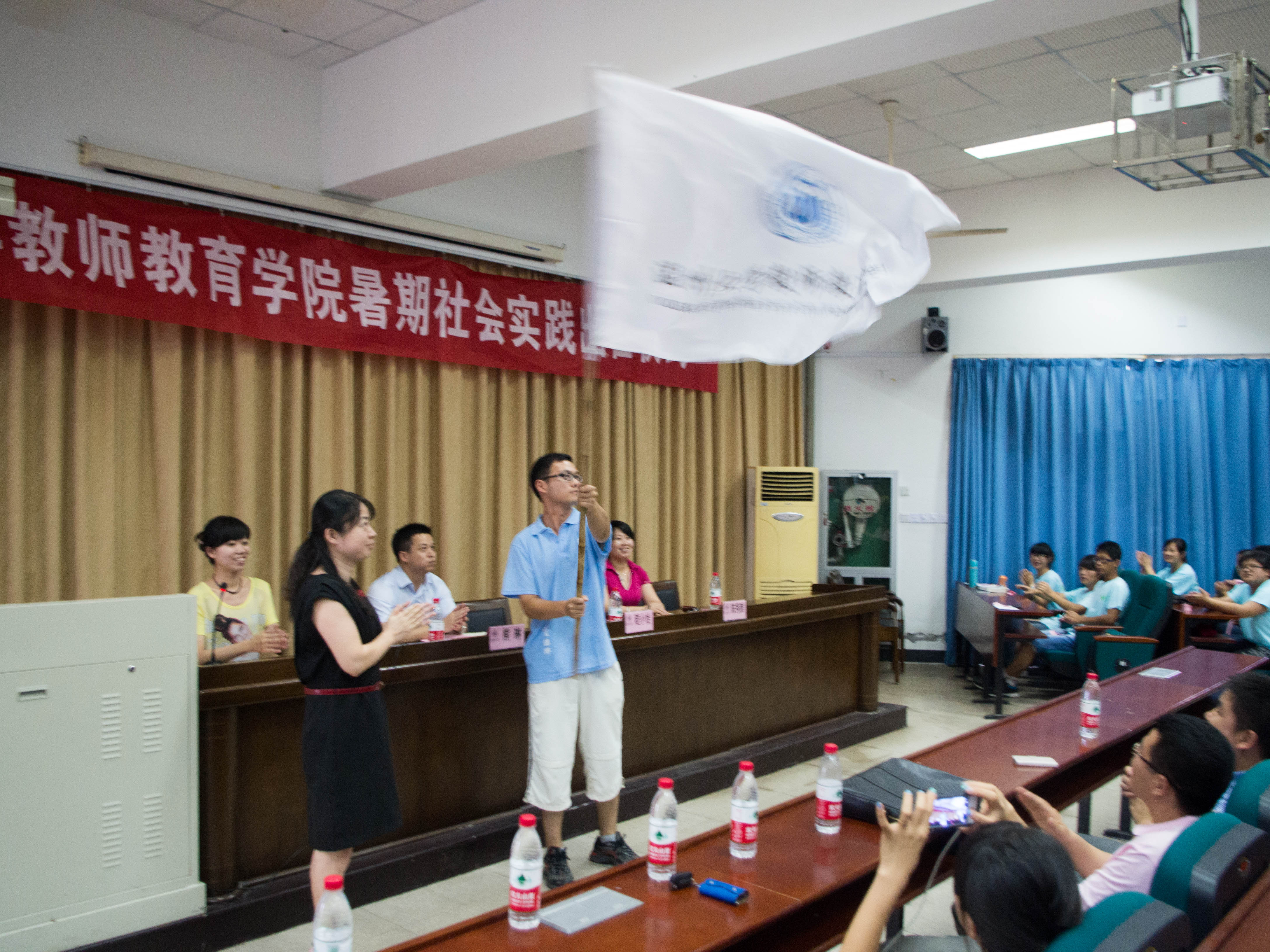 会上来自11应用心理学本的学生代表黄唯佳发言。她表示今年的暑期社会实践在形式和内容上都有所丰富,且每支队伍创新性地开展调研,做到理论和实际相结合。随后来自12小教科学的罗博文同学领誓,全体队员庄严宣誓,铿锵誓词饱含每一位队员的热情和信念。宣誓完毕,由学院党总支副书记嵇小怡为实践总队授旗。高高飘扬的实践队旗,昭示着日本最新av