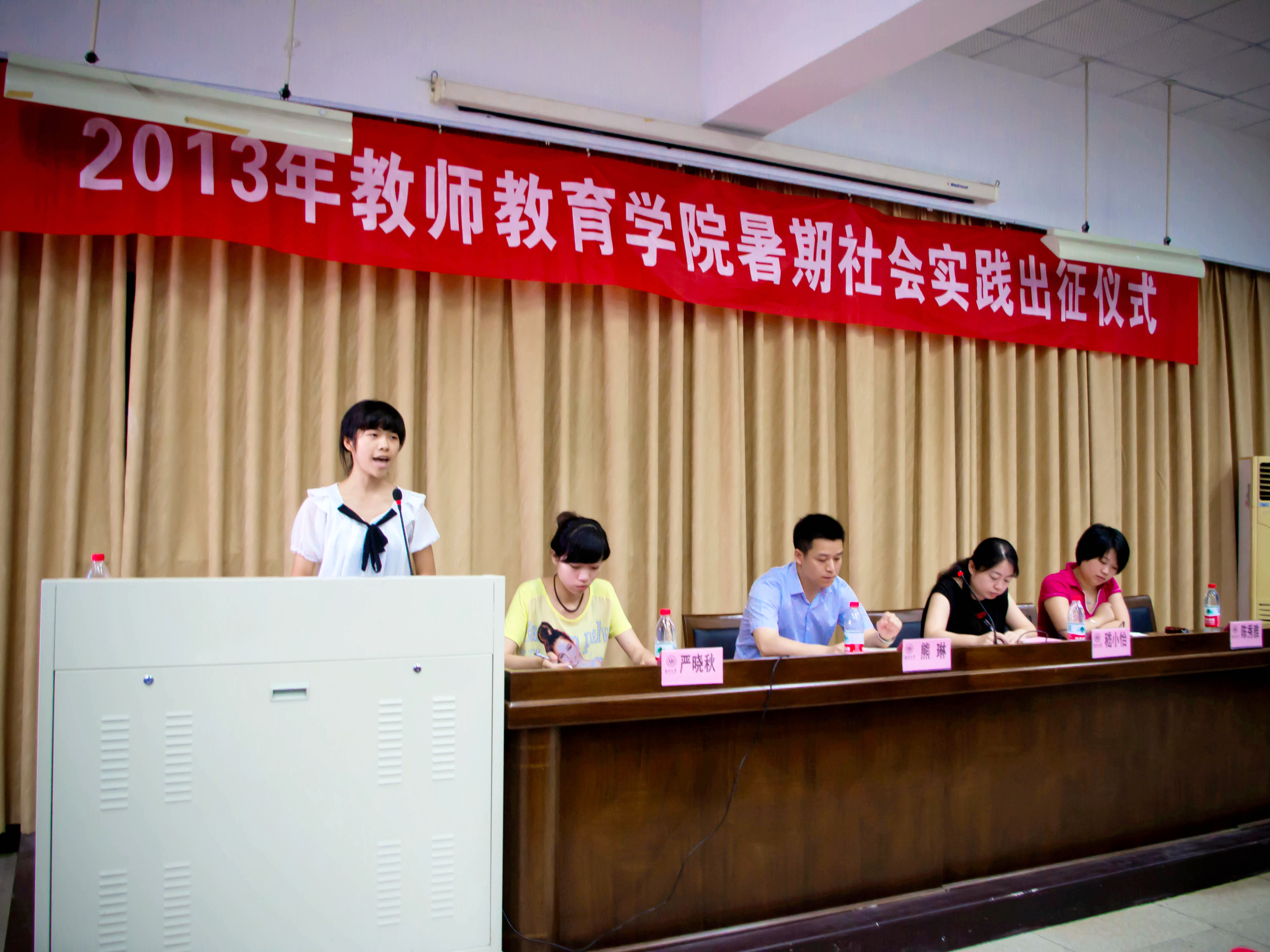 的暑期社会实践队伍既传承支教特色又不断开拓创新,年年都有新的内容、新的改革、表现突出的新同学。二、学社会 展自我。同学们要在社会的大家庭里积极吸收知识,丰富经验,展现自我的才能。三、凝团队 记安全。同学们在实践中需注重团队意识,把安全放在首位。在话语中饱含了嵇书记对我们实践队员的关切与期许。