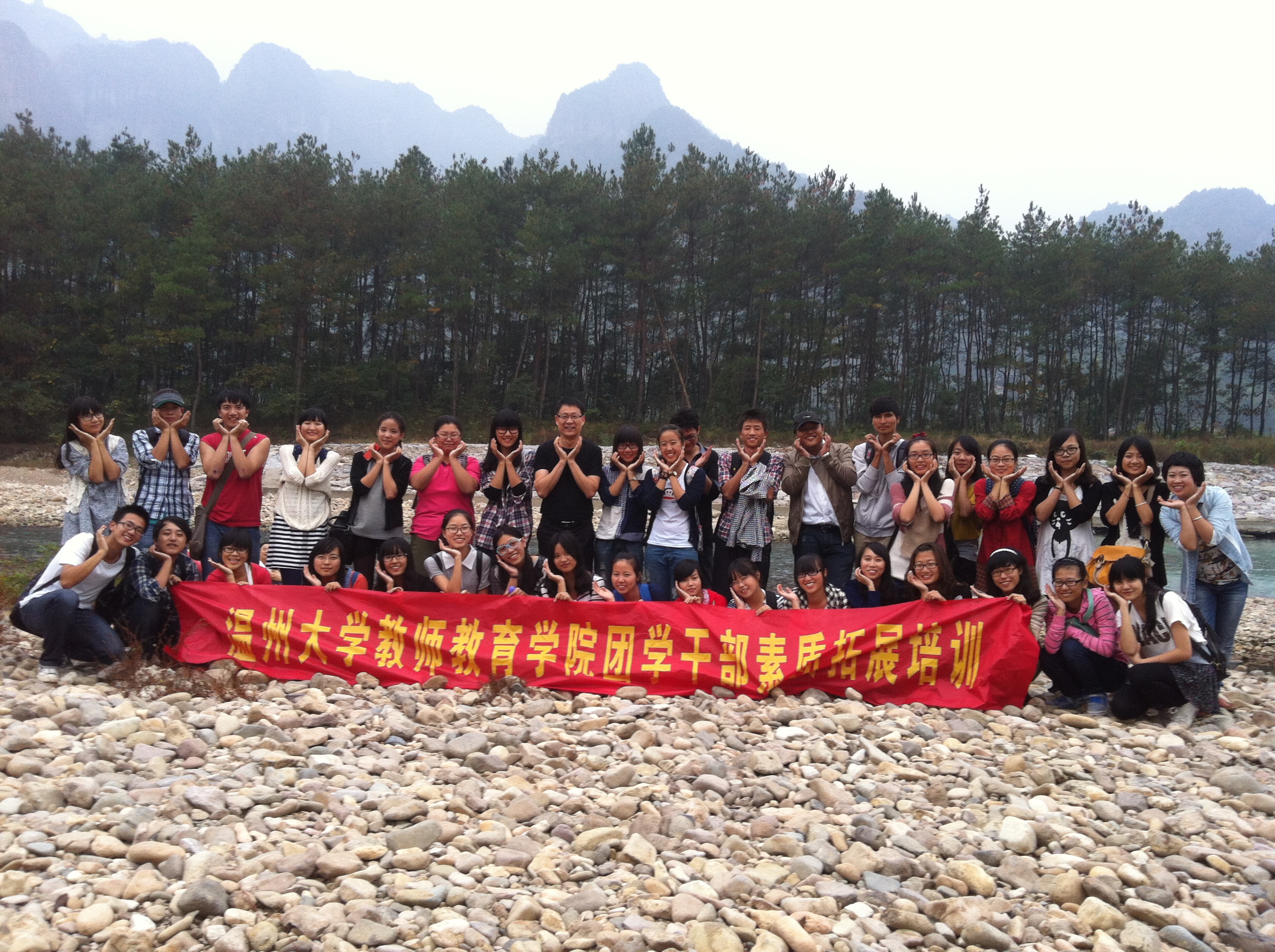 团委学生会团学干部和干事,在学院党总支书记蔡联群、党总支副书记嵇小怡、团委书记陈秀雅老师、辅导员吴冬冬老师的带领下,分两批进行了楠溪江户外团干素拓培训。
