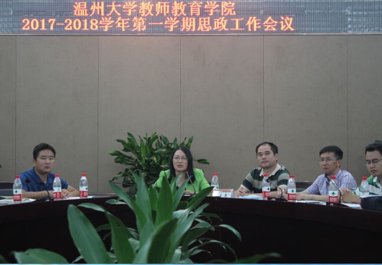 9月13日,教师日本最新av 在白鹿厅召开学院2017-2018学年第一学期思想政治工作会议,校党委委员、宣传部部长潘玉驹,教师教育学院党总支书记杨立淮,党总支副书记杨丽君,学院各系(中心)主任、书记,各科室负责人、学院全体辅导员和班主任70余人参加会议。