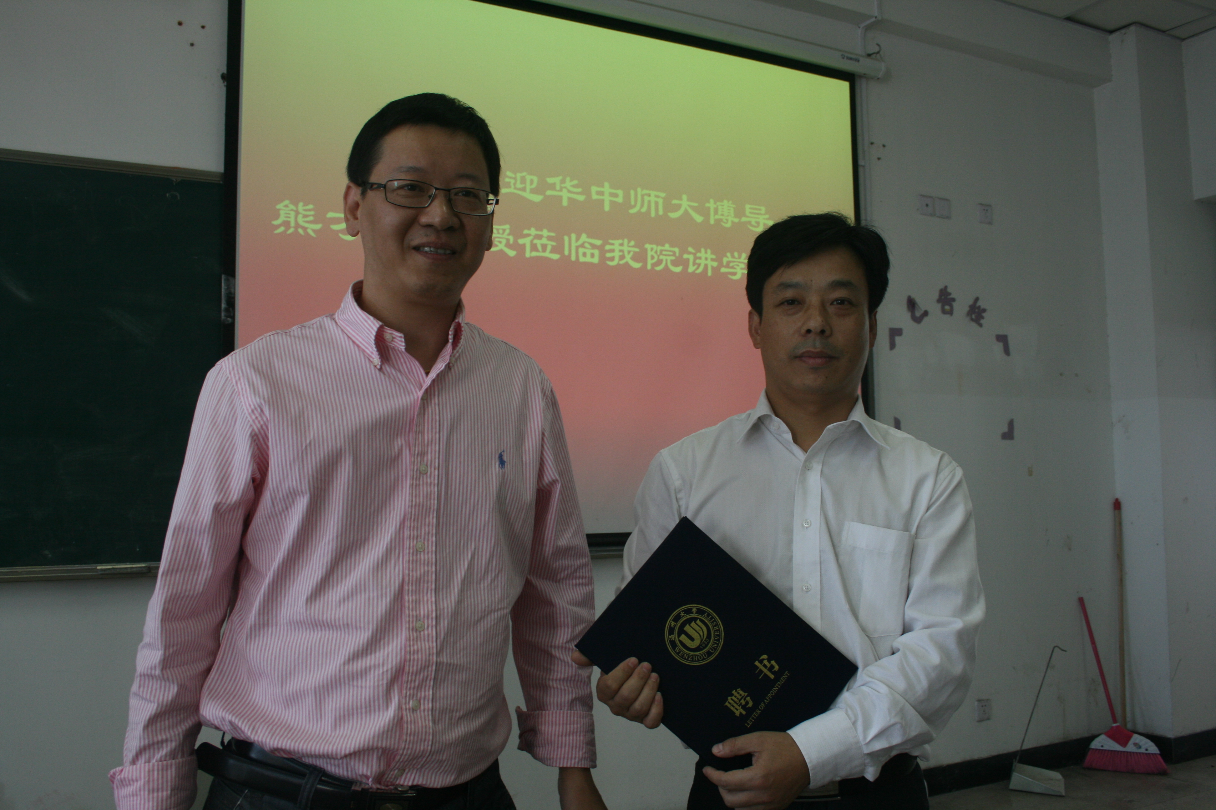 院长郑信军教授为熊教授颁发了特聘教授的聘书。教育技术系师生及研究生同学认真聆听了讲座。熊教授从解读《国家中长期教育改革与发展规划纲要(2010-2020)》为切入点,用简单明了的方式向同学们介绍了教育信息资源共享与发展变革、教师资源共享与培养变革、网络环境下的教学变革等方面的内容。最后熊教授以互动交流的方式激起了同学们的热情,把讲座推向了高潮。