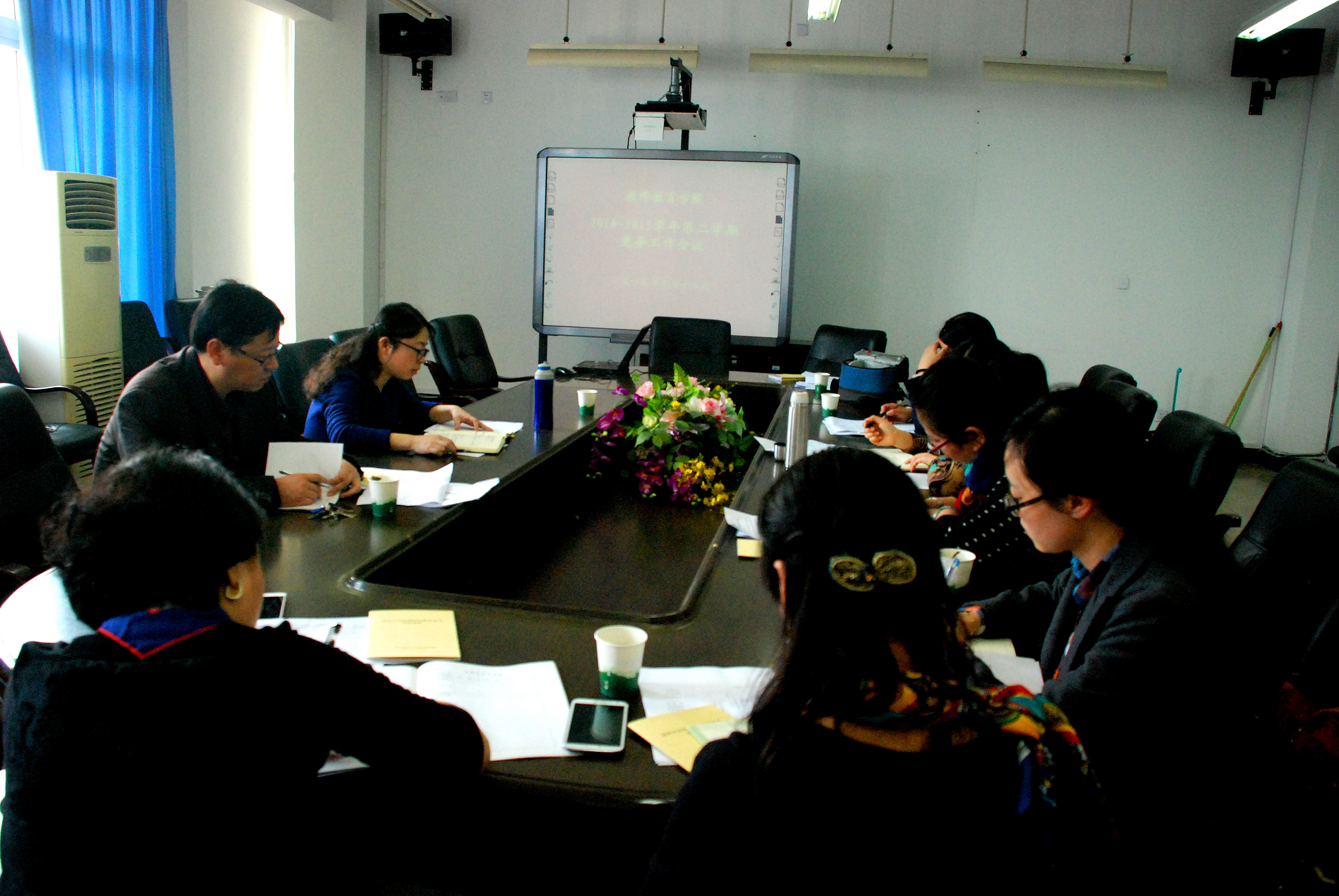 新学期党务工作会议在3号楼311会议室会议召开。会议由嵇小怡副书记主持,院长、党总支副书记郑信军同志、各师生支部书记出席会议。