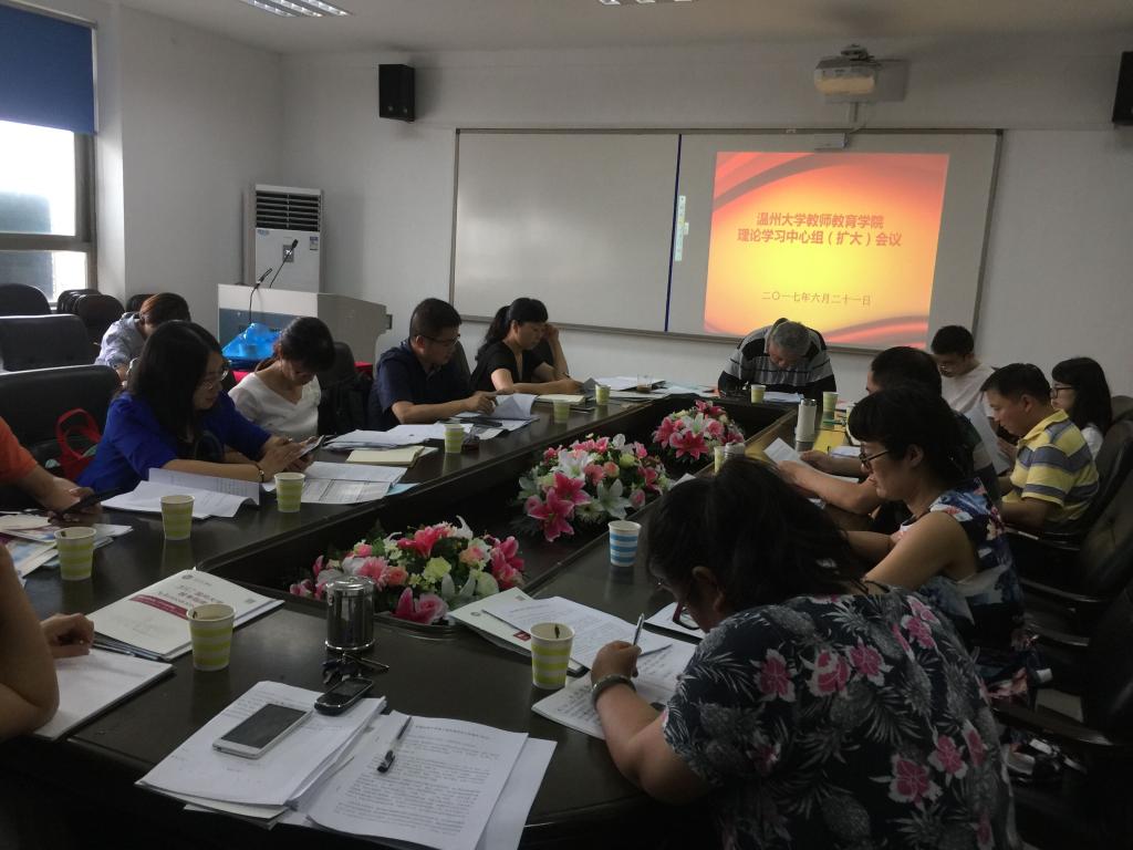 6月21日下午,日本最新av 在南校区9A410会议室召开理论学习中心组(扩大)会议,学院领导班子、党总支委员,各系(中心)主任、书记、副主任以及各科室负责人参加,会议由杨立淮书记主持。