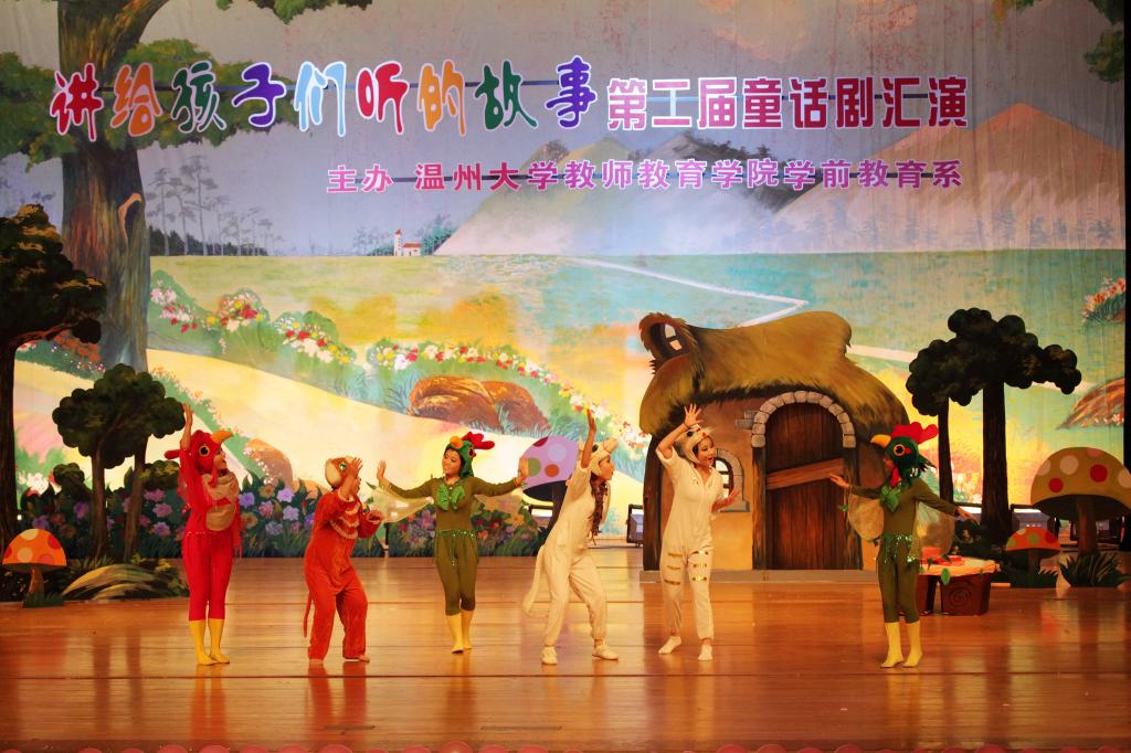 领导的关心与指导下,于2010年5月成立,汇集学前系郑薏苡老师为主的优秀教学团队为指导老师,每年招收本、专科学生为儿童剧社社员,利用课余时间自编、自导、自演儿童剧,自2009年起已连续四年在六一前夕举办“讲给孩子们听的故事”儿童剧公演。还多次开展儿童剧进海岛,儿童剧下乡,儿童剧下幼儿园活动,获得社会广泛的称赞。成为温州大学服务地方最受社会欢迎的品牌项目之一。