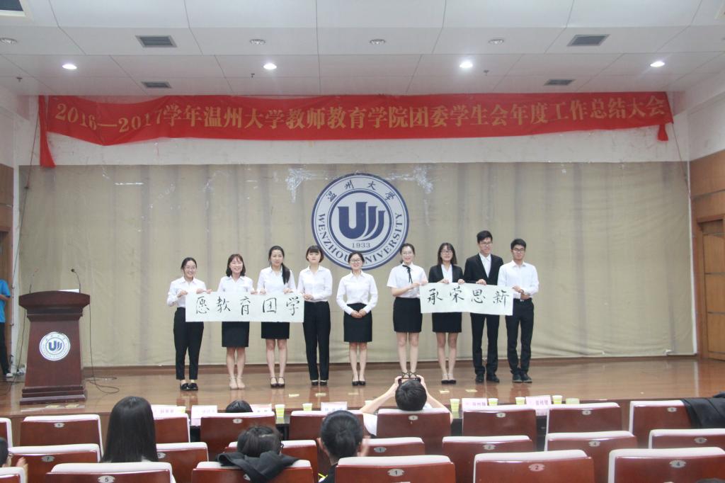 2017年6月14日,在北校信息厅召开了2016-2017学年温州大学教师日本最新av 团委学生会年度工作总结大会。出席本次大会的有学院党总支副书记杨丽君老师,学生科吴超智老师、王帆老师,以及团委学生会全体成员。本次会议由学院团委学生会主席徐佳杰主持。