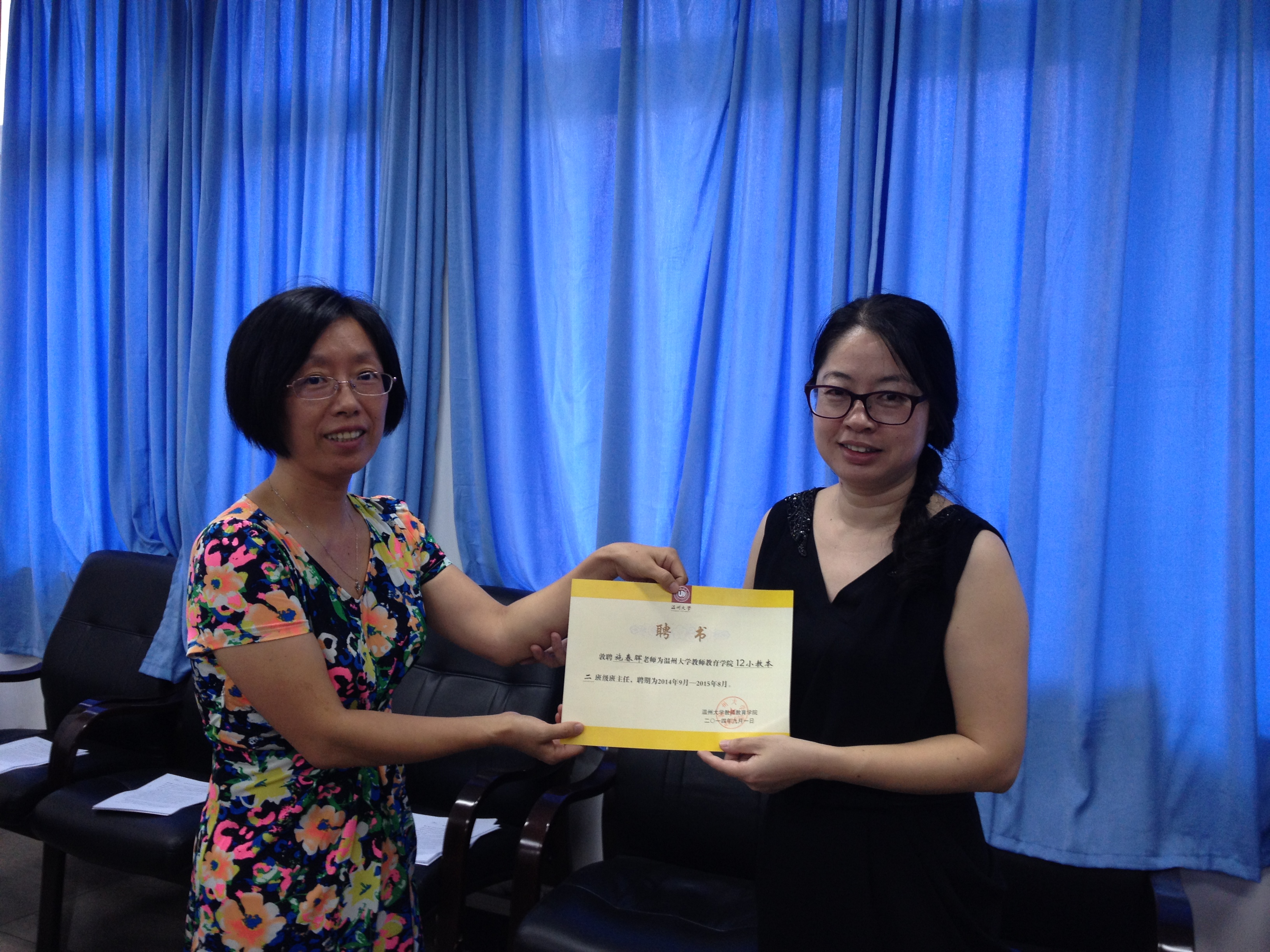 嵇小怡副书记做了总结发言。她高度肯定了日本最新av 班主任老师们的工作,她引用今年教师节习近平同志在北师大师生代表座谈会上的讲话,“教育是一门‘仁而爱人’的事业,爱是教育的灵魂,没有爱就没有教育”来肯定班主任老师爱生、育人的辛勤付出,希望各位班主任老师能够继续把自己的满腔真情倾注于教育事业。最后,嵇小怡副书记为各班主任颁发聘书,再次体现了学院对班主任工作的重视与支持。