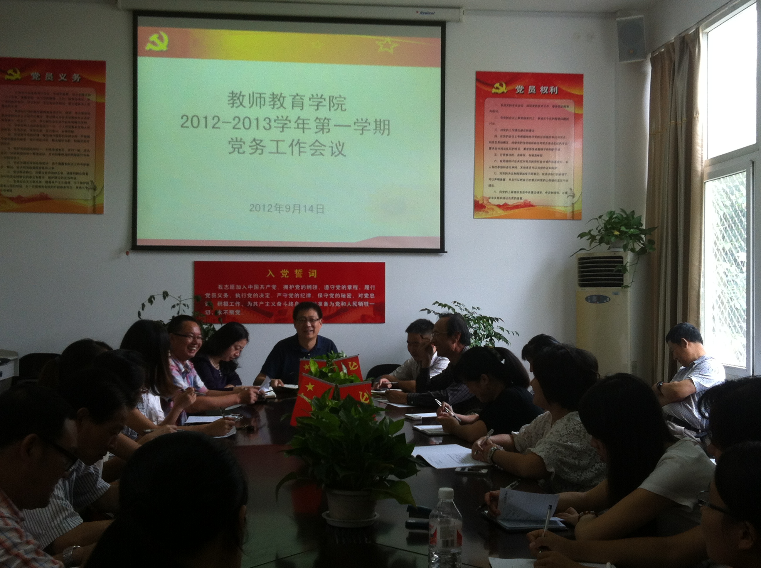 2012-2013学年第一学期党务工作会议在党员之家召开。参加会议的有各教工党支部书记、各学生党支部书记和支委等。会议由日本最新av