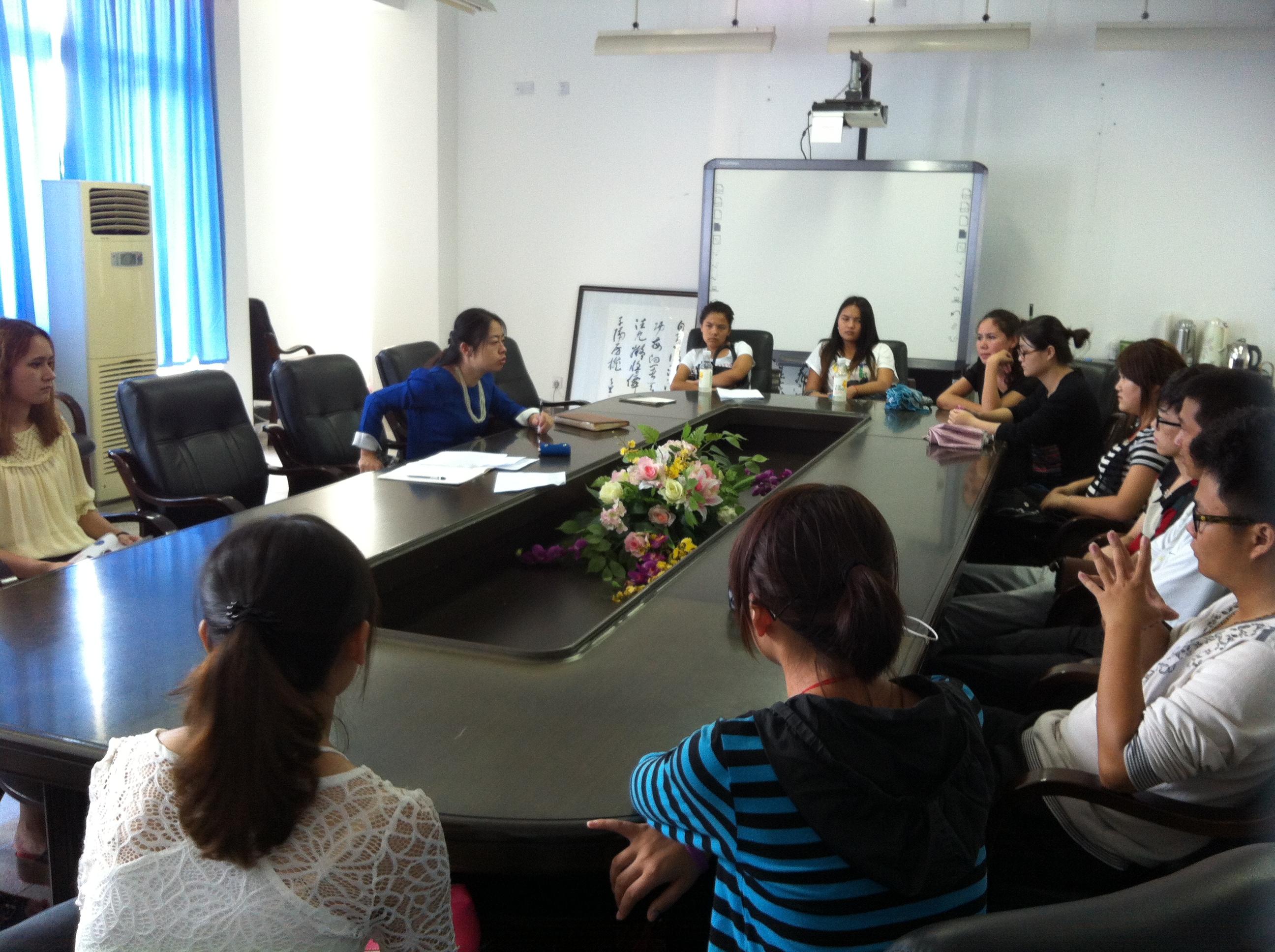 新疆籍学生座谈会在311会议室召开,嵇小怡副书记出席会议,11、12、13级全体新疆籍同学参加会议。