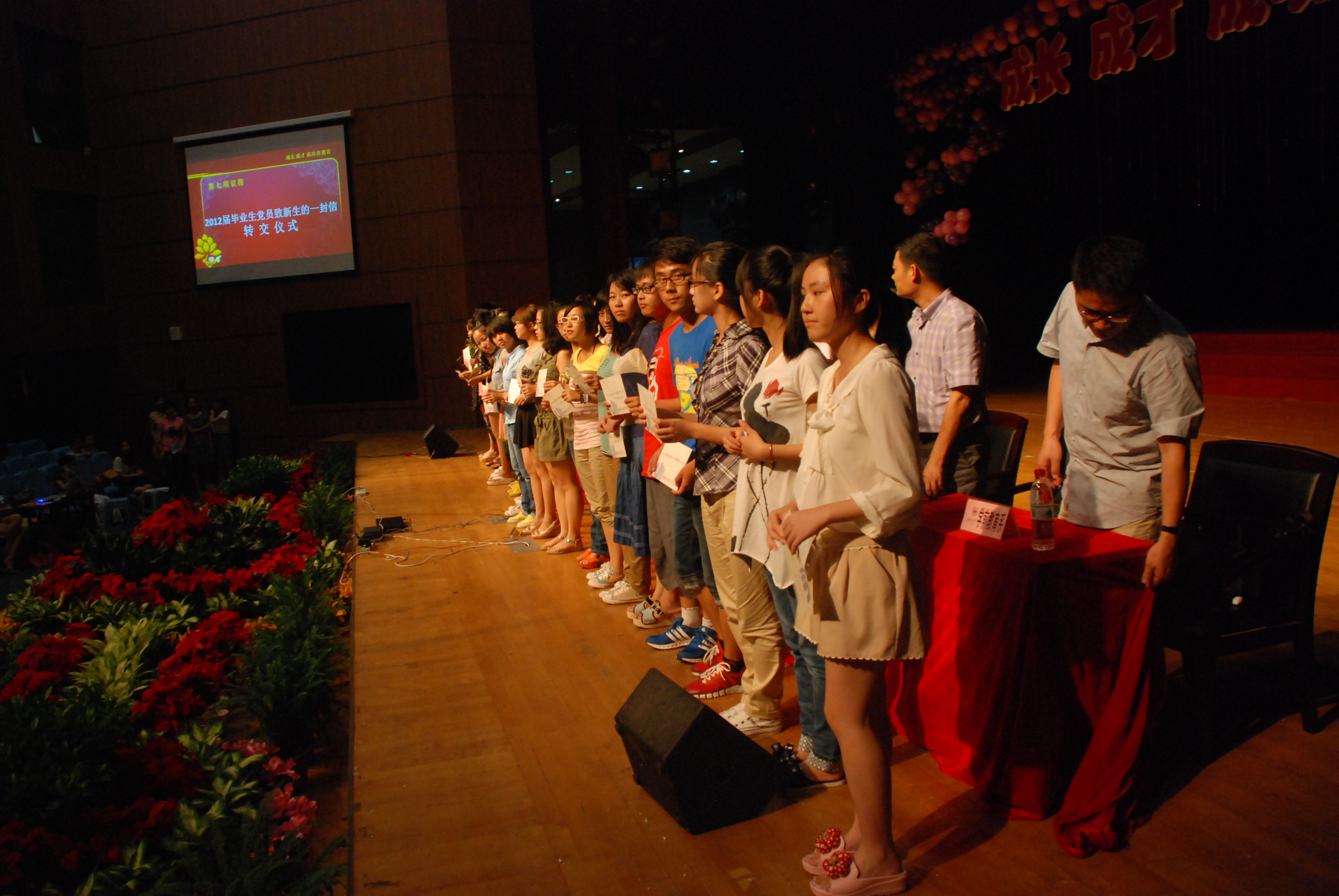 她的发言是她写给新生的信中的内容。今年,2012届毕业生党员用他们亲身的经历和经验,从学习、工作、生活、就业等各个方面引导新生们规划好大学生活,并以信件的形式写给2012级新生,100名党员100封信。2012届毕业生党员将他们的关爱传递给新生。为了方便给新生同学答疑解惑,毕业生们在信中留下了自己的联系方式。22名新生代表上台参加了信件转交仪式。仪式虽然非常简短,但是承载了学姐学长们对于新同学的祝福,传承了日本最新av