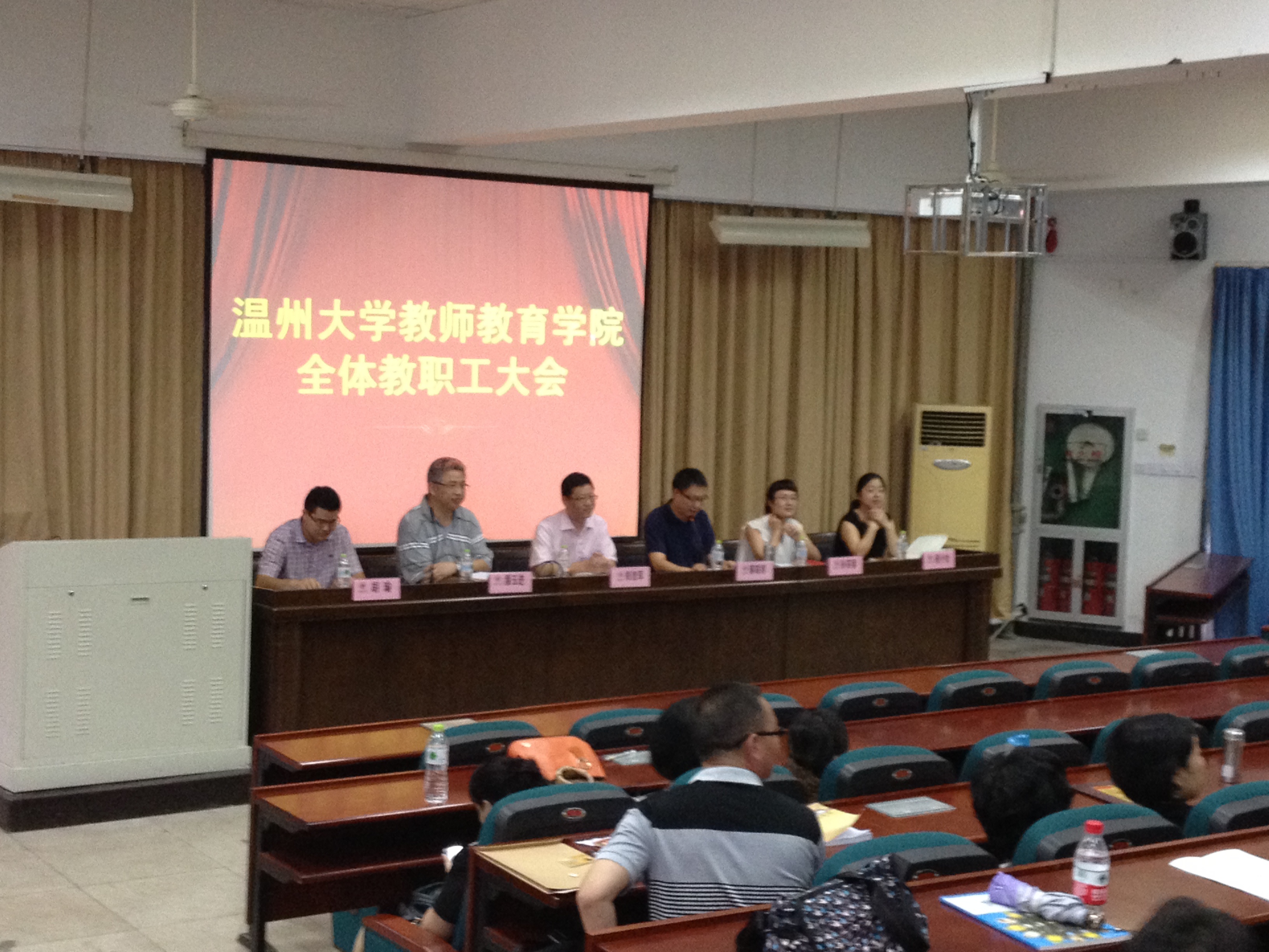 郑信军院长讲话,他向在暑期中坚持工作的老师们表示衷心的感谢,并公布了新一轮聘任后学院的师资结构以及新生录取情况。他向大家转达了暑期中层干部会议的精神,指出,学院现在要处理好三大关系:一是“面子-里子”关系,即学科建设标志性成果和人才培养质量的关系;二是“顶天-立地”关系,即学科研究和服务地方的关系;三是“引进-挖潜”关系,即卓越人才引进和现有师资潜力挖掘的关系。学院接下来的发展思路是:要以师资队伍建设为主线,一手抓人才培养质量,一手抓学科建设。最后,郑信军院长通报了学院2012年3月至8月的财务收支情况。