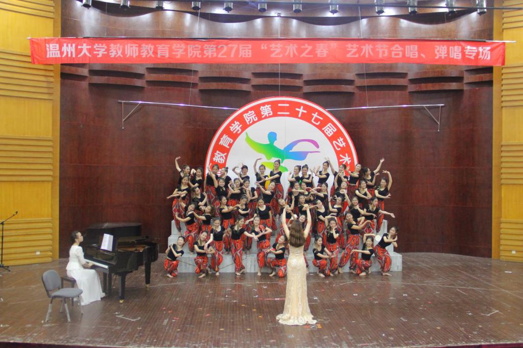 芬芳的五月,校园里鸟语花香,到处都是春的呼唤,到处都洋溢着悦耳的歌声。2017年5月9日晚6:30,温州大学教师日本最新av 第二十七届“艺术之春”声乐专场在南校音乐厅拉开序幕。亲临此次比赛的评委老师有教师日本最新av 陶陶、翁鲜丽、杨婧、叶熙熙、陈恩清、章伟丹老师。本次声乐专场分为合唱与弹唱两个专场。每个班级的节目都精心准备,精彩缤纷,让我们的双耳聆听了一场声音的盛大晚会。在主持人一段精彩的开场白与评委老师介绍之后,合唱专场比赛正式拉开了序幕。
