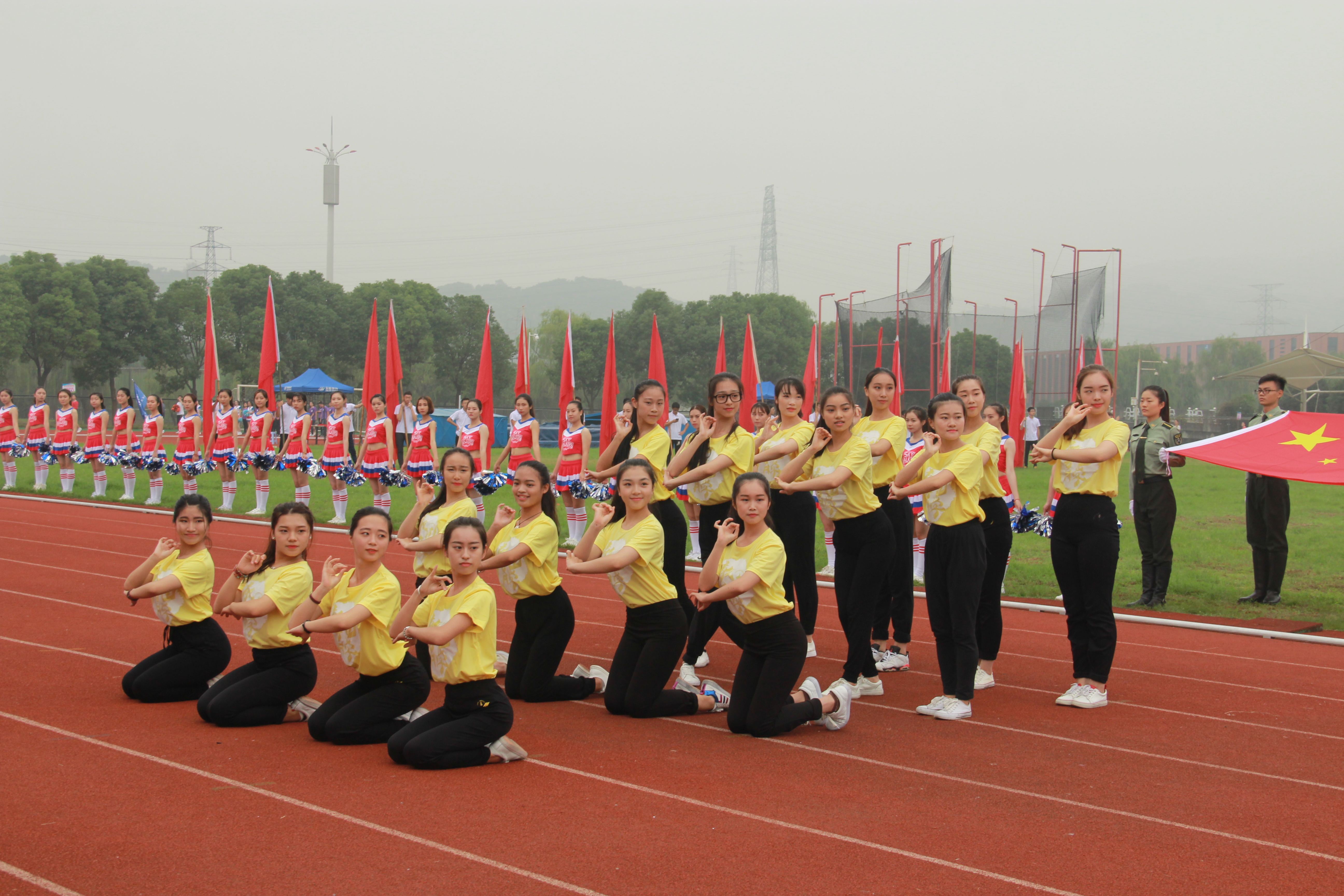 10月27日校运会的开幕式上,彩旗飘飘,欢声雷动。突然间被一群灵巧可爱的鸟儿吸引住了视线,没错,这正是教师日本最新av 的方阵,她们统一身着黄色的上衣,身姿舞动,大气高雅,活力四射,尽显日本最新av 良好的运动风尚,引得全场一阵欢呼。