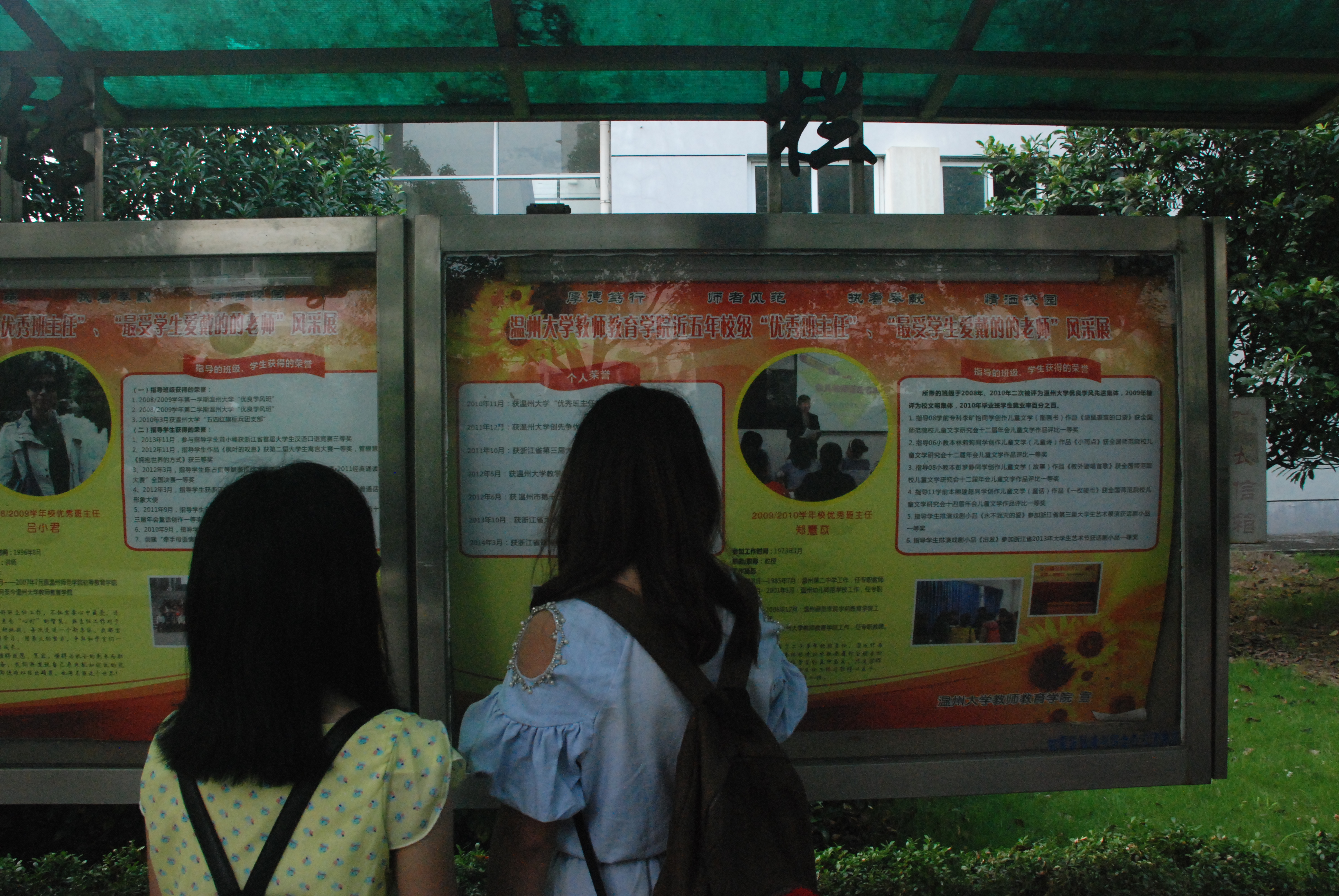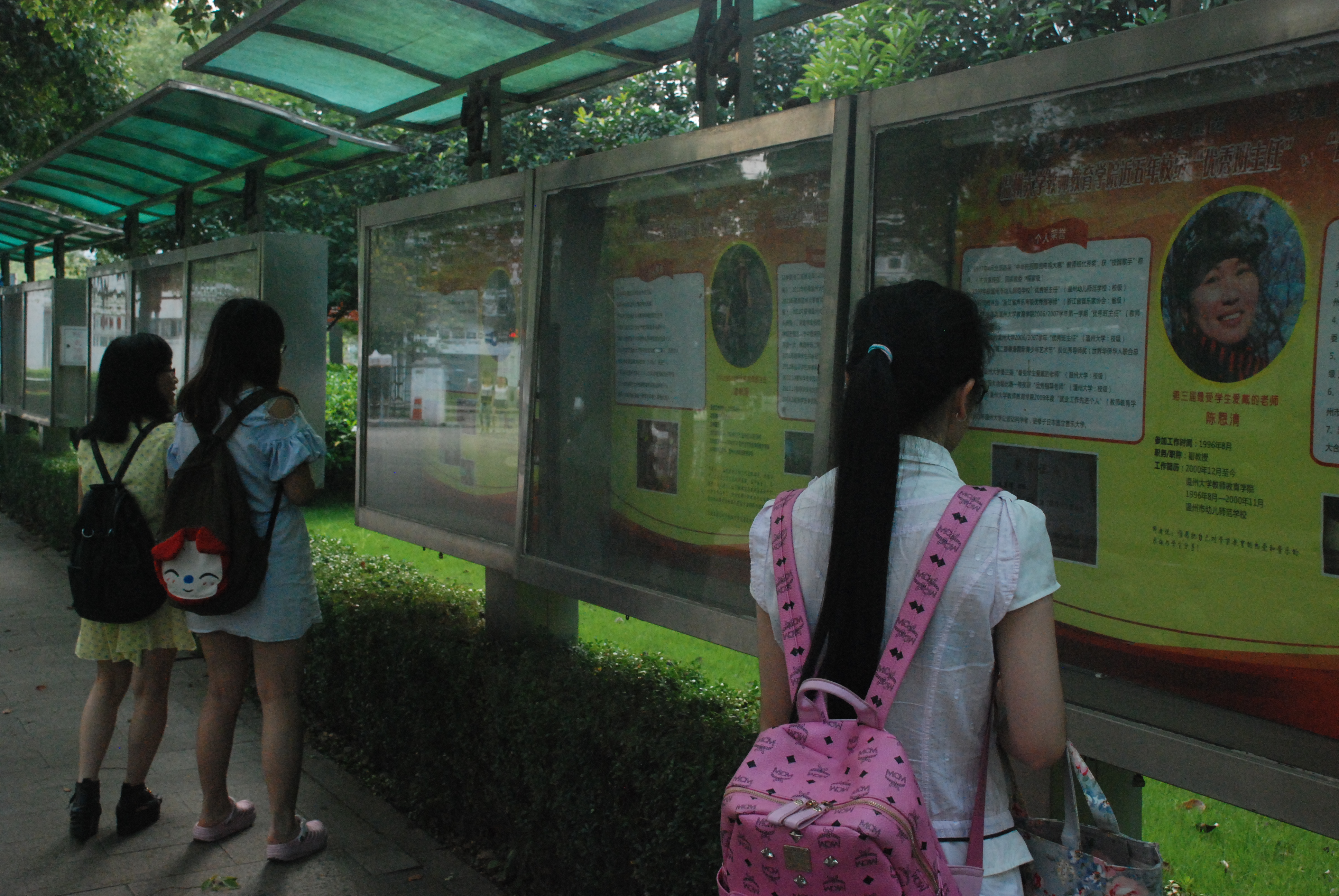近五年校级“优秀班主任”,“最受学生爱戴的老师”风采展于北校行政楼右侧橱窗展出,吸引了大批师生驻足观看。