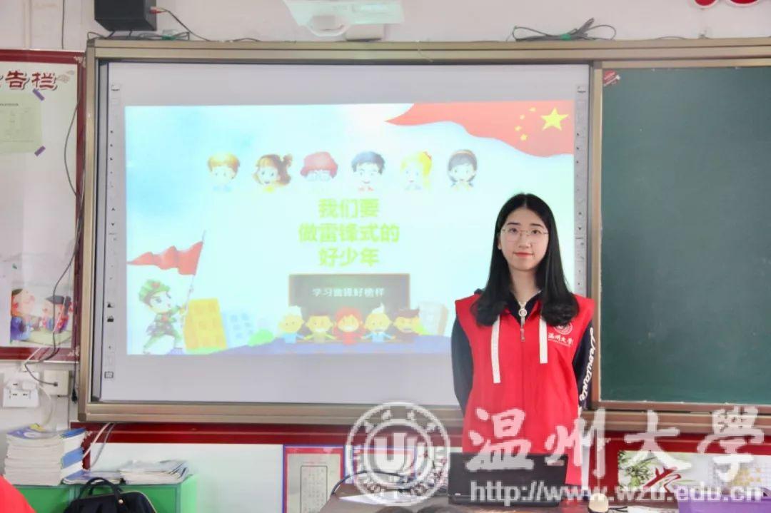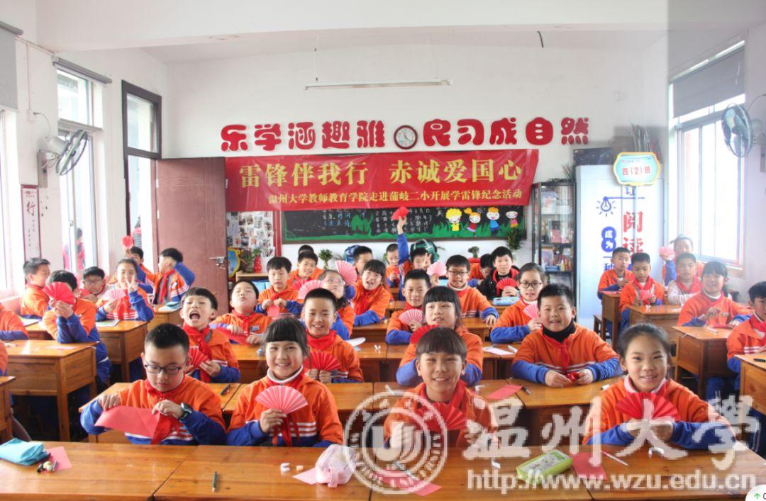 践行雷锋精神,凝聚奉献力量。以雷锋月为契机,3月20日下午,温州大学教师日本最新av 的志愿者们前往乐清市蒲岐二小开展了以“雷锋伴我行,赤诚爱国心”为主题的新青年下乡活动。志愿者们通过故事宣讲、游戏互动、手工制作,将雷锋精神和两会热点相结合,引导孩子传承雷锋精神,激发他们的爱国之心和报国之志。