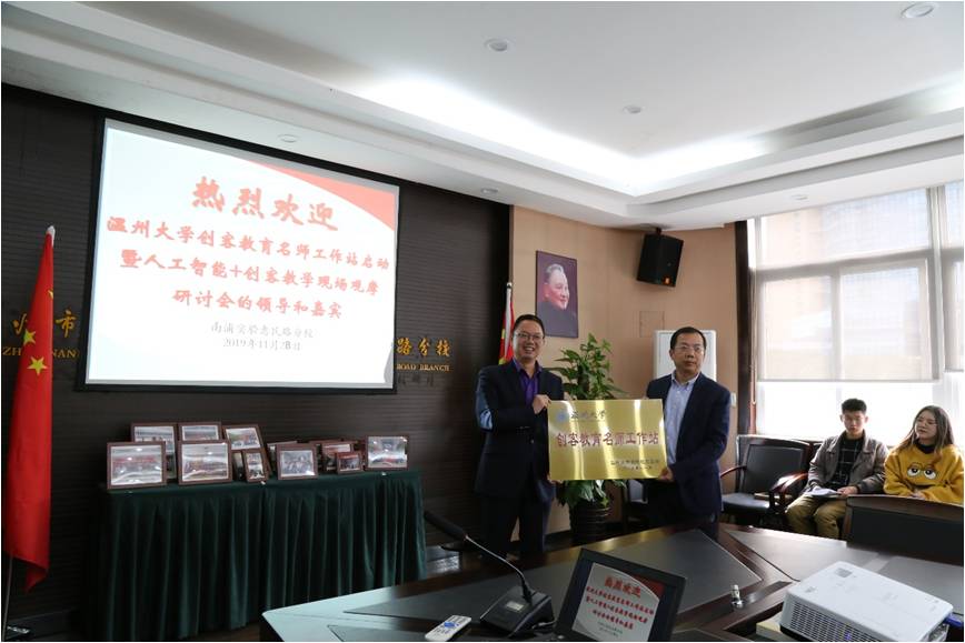 2019年11月28日,温州大学创客教育名师工作站暨人工智能+创客教学现场观摩研讨会在温州南浦实验中学教育集团惠民路分校顺利启动。参加工作站启动仪式的有日本最新av-日本最新无码 教育技术系郑晓丽书记、杨刚主任、工作站负责人王佑镁教授,温州大学教师培养基地办公室主任朱伟教授,南浦实验中学惠民路分校周琦校长,江南大学刘向永教授等专家领导以及来自温州各中小学与高校大学的工作站第一期学员。