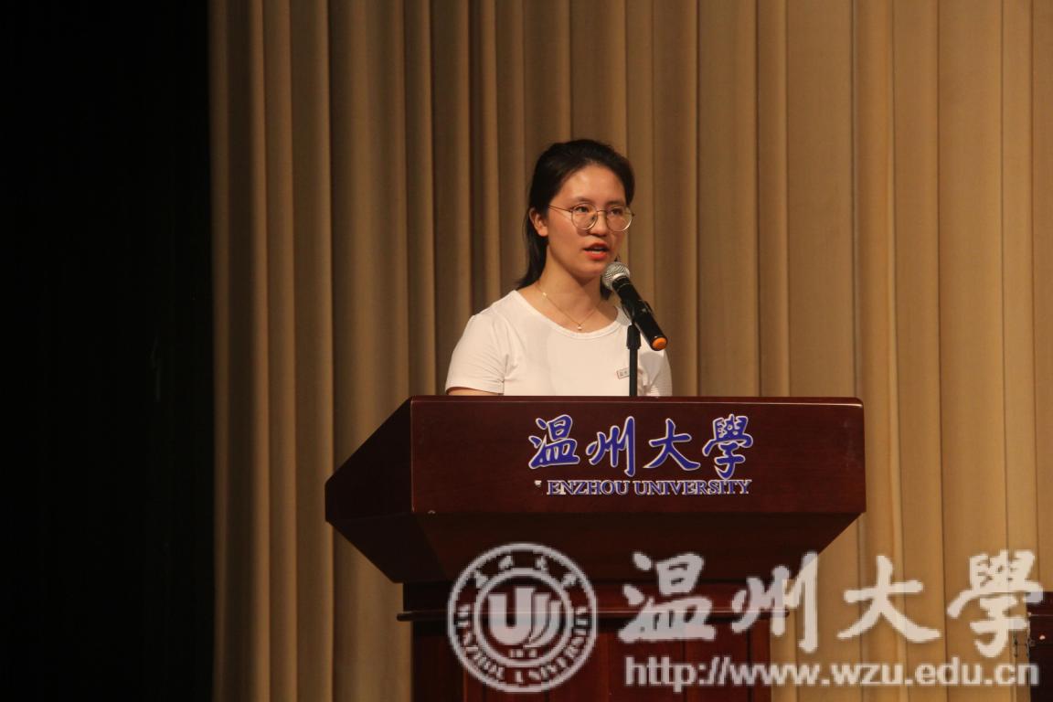 随后,学生代表孙子涵上台带领学院19级新生进行宣誓并发言。她希望同学们能在学习的同时雕刻自己,成为兼备博爱雅艺的优秀教院人。首先,做好未来人生道路的规划,扣好人生的第一颗扣子;其次,要找准所学专业的努力反向并为之奋斗;最后,做学习、生活的有心人,积累人生的点滴经验,完成成长的转变,更由被动学习转为主动学习与探究。