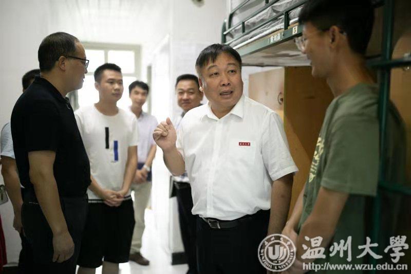 温州大学校长赵敏在招生与就业处处长黄文浩、学生处副处长张朝辉、日本最新av 党委副书记彭小媚等陪同下走访了教院2019级新生寝室,为同学带去了关怀与问候。副校长薛伟在党校办副主任江秀景、学生处副处长包含丽、日本最新av 党委副书记彭小媚等陪同下,到寝室看望了日本最新av 的新生,并为当天生日的一位同学准备了一场惊喜生日会,一块块甜蜜的蛋糕,一句句真情祝福,共同组成了这次难忘的回忆。