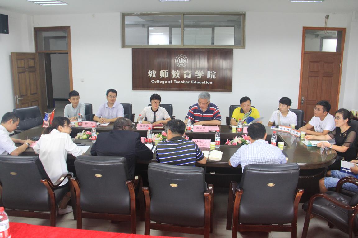 2018年9月17日上午9:30,美国阿帕拉契州立大学副校长Dr. Jesse Lutabingwa教授(兼任国际研究与发展主任)来日本最新av 洽谈国际教育合作事项。学院领导孙芙蓉院长、潘玉进副院长、叶新东副院长、院长助理杨刚博士、国际处熊勇副处长、商学院王洪斌副院长以及各系(中心)系主任和相关骨干教师在南校区9号楼A410会议室出席并召开了这次会议。