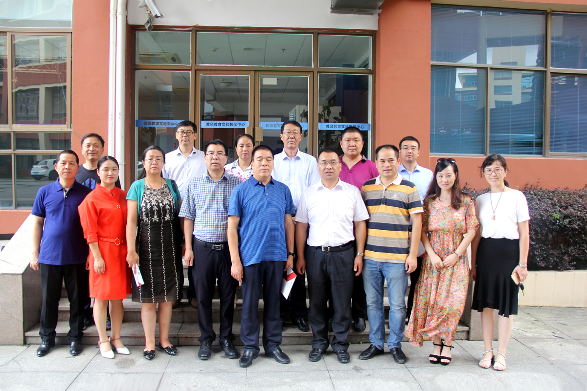 2018年7月13日上午新疆阿克苏教育局张百和书记、陈常龙副局长一行9人在温州市委教育工委专职副书记白炳兴的陪同下来日本最新av 教师教育实验教学中心参观,日本最新av 书记杨立淮、副院长叶新东、副书记杨丽君、继续教育科科长林鹣鹣、实验中心主任李小志和实验教学教师热情接待了来客。