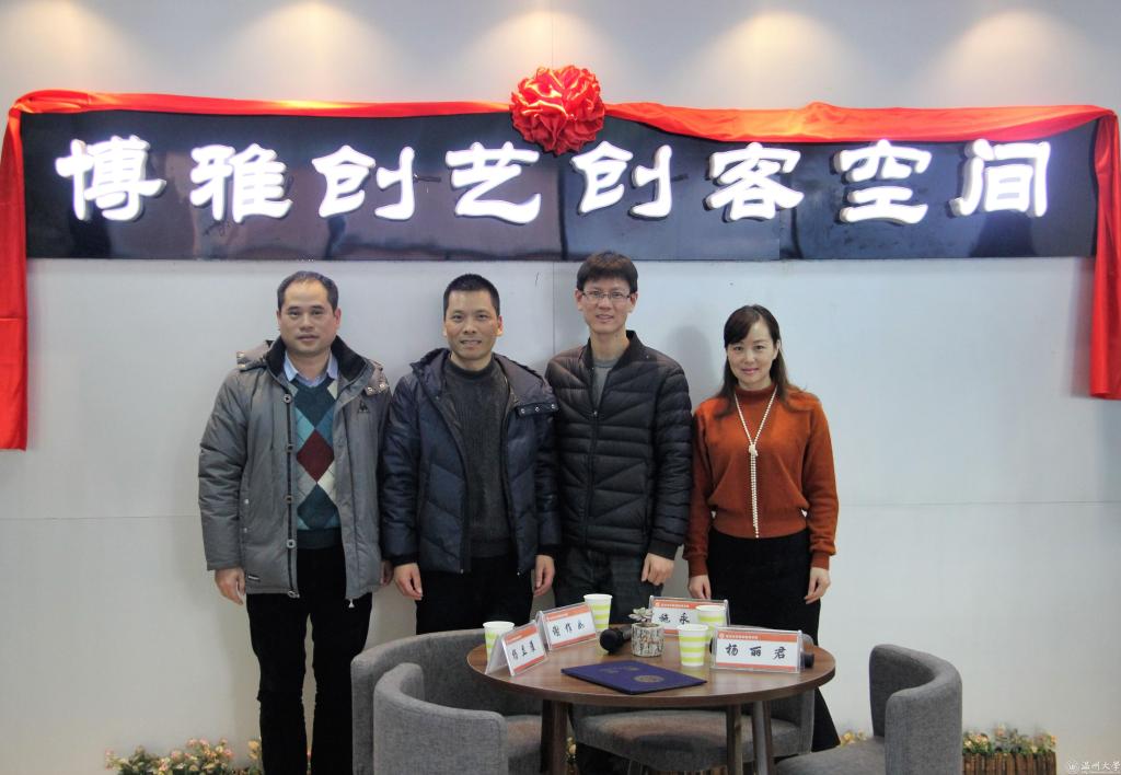 2018年1月16日下午,温州大学教师日本最新av 于北校6号楼一楼举办了博雅创艺创客空间揭牌仪式暨首场创客教育沙龙,出席此次活动的有学院党委书记杨立淮、学院党委副书记杨丽君、创业学院副院长施永川老师、谢作如老师以及博雅创艺创客空间各团队指导老师、团队成员。