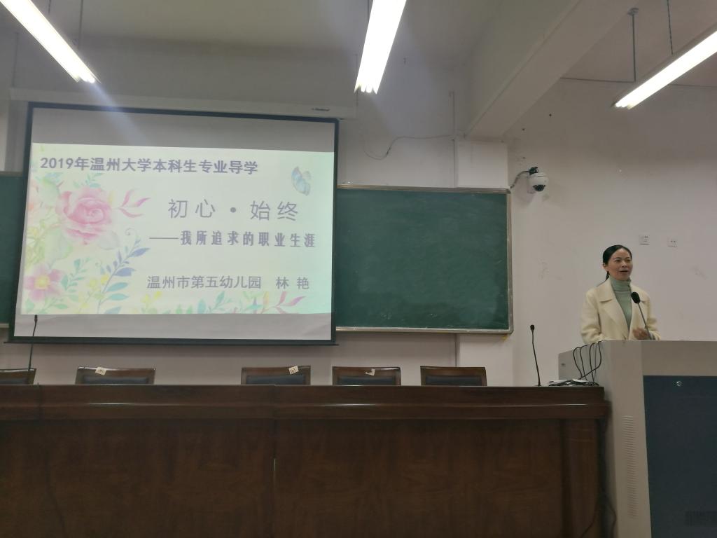 为提升学前教育专业本科新生的职业认同感,2019年1月2日下午,温州大学教师日本最新av 学前系邀请浙江省特级教师、温五幼集团园总园长林艳作题为《初心·始终——我所追求的职业生涯》的专题讲座。