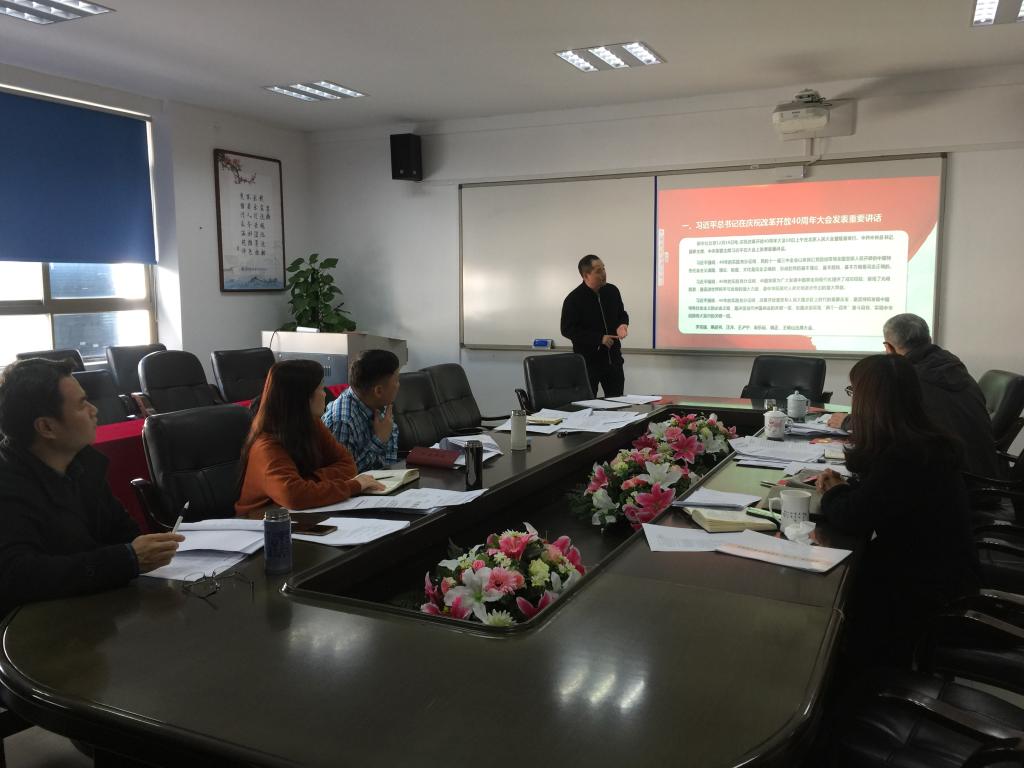 会议专题学习习近平总书记在庆祝改革开放40周年大会上的讲话精神,围绕“充分认识习近平总书记重要讲话的重大意义、深刻理解习近平总书记重要讲话的精神实质、争当新时代改革开放的排头兵、迅速兴起学习宣传贯彻习近平总书记重要讲话精神的热潮”等4个方面进行了认真学习。