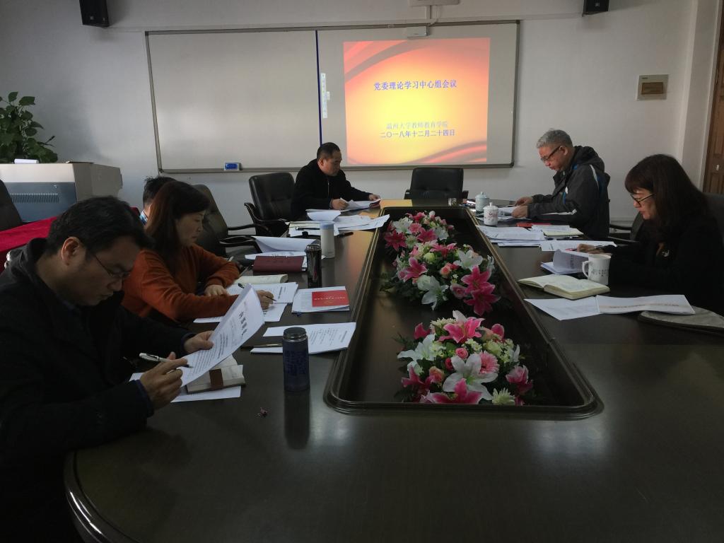 12月24日上午,日本最新av 在南校区9A410会议室召开理论学习中心组会议,学院党政班子领导参加,杨立淮书记主持。