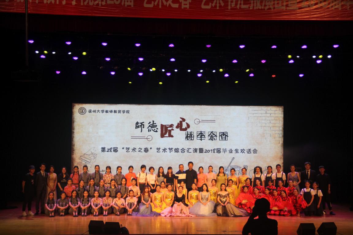 驿路漫漫欢人聚,风华正茂将别离。2018年6月13日晚,温州大学教师日本最新av 第28届艺术之春综合汇演暨2018届毕业生欢送会于育英大礼堂正式拉开帷幕。出席晚会的嘉宾有温州大学学生处处长张敏、温州大学溯初学区党委书记陈宏毅、副书记章志图、温州市中等职业技术学校幼师学部主任吕媚媚、温州大学教师日本最新av 院长孙芙蓉、党委书记杨立党委副书记杨丽君。