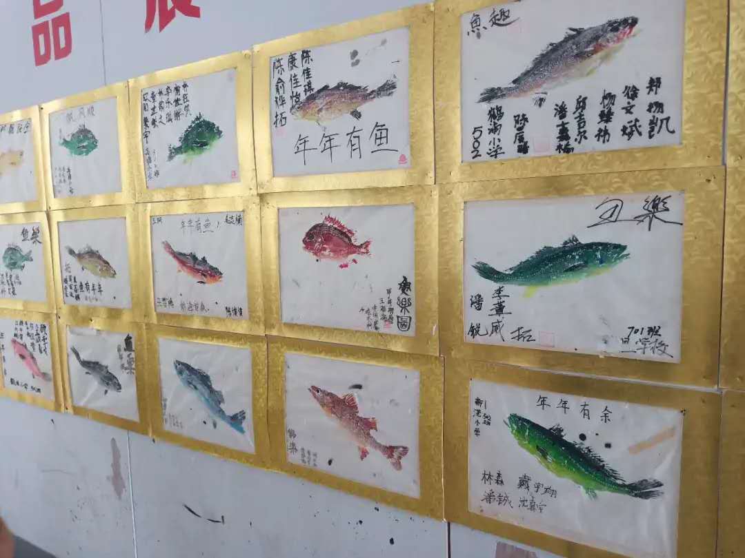 实践队的队员首先参观了麦秸贴,学生们用麦秆,麦草进行剪贴,绘出当地的风景,成就一门艺术。渔灯是当地海洋文化的明信片,在教室的天花板上,挂满了学生和老师制作的精美渔灯。渔灯是手工工艺的传承,也是当地渔文化的印证。鱼拓更是当地一绝,将鱼的形象用墨汁或颜料拓印到纸上,记录和展示不同种类的鱼,感受中国古老的碑拓技艺,体味历经沧桑的渔文化。鱼类标本的制作,也令队员们大开眼界,仿佛置身于小型的鱼类博物馆。