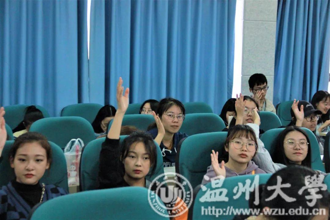 同时,金教授分享了自己在美国的留学经历,当时的贫富差距大到令人难以想象,而那些丧失自我价值的人往往会认为自己的生命失去了价值,从而他让大家明白了自我价值对生命的意义,一个懂得构建自我价值的人往往更尊重自己,更尊重生命。紧接着,他为大家介绍了自我价值定向理论基本命题,一个向开门保安道谢的简单例子就形象解释了自我价值的符号互动原理。随后,金教授借用中国女性避险的求偶策略向大家阐述了自我价值定向理论的应用。最后,金教授以“你若想做,会找到一种方法;你若不想做,会找到一种借口”作为结束语,告诫大家若有目标,就要付诸实际行动,勿做思想的巨人、行动的侏儒。