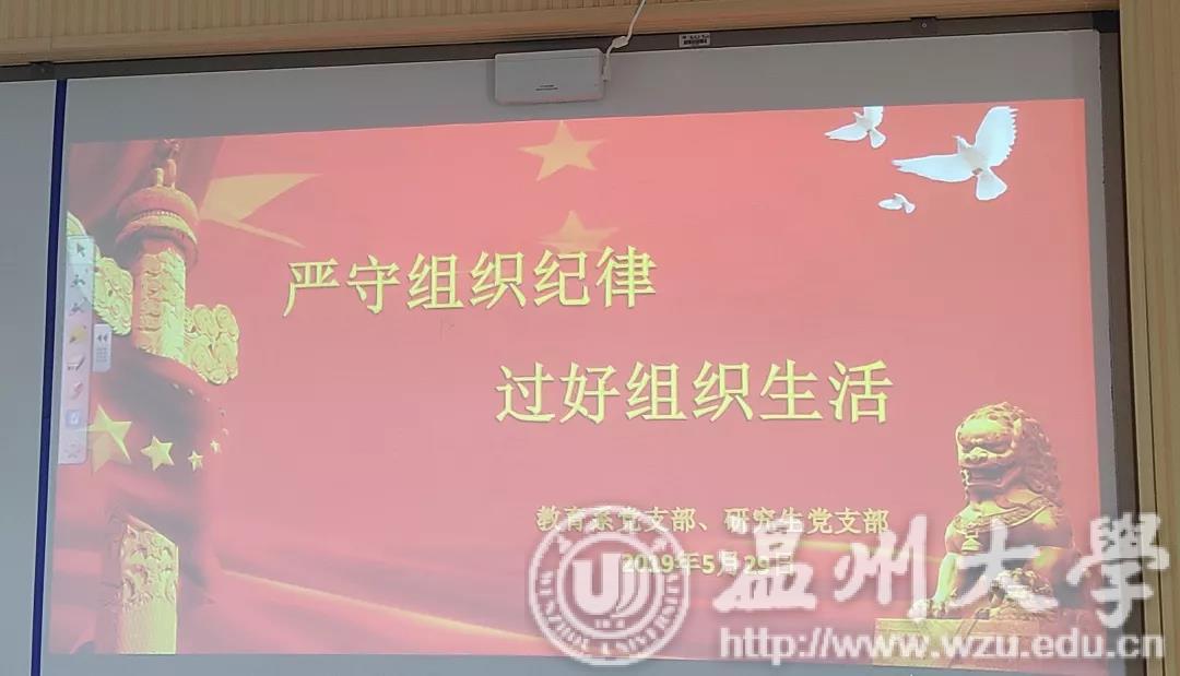 5月29日下午3:30,温州大学教师日本最新av 教育系党支部和研究生党支部在南校区9C401开展以“严守组织纪律,过好组织生活”为主题的警示教育活动。参会人员有教师日本最新av 教育系支部的全体教师党员和研究生党支部的学生党员。本次活动由教育系支部书记周奇老师主持。