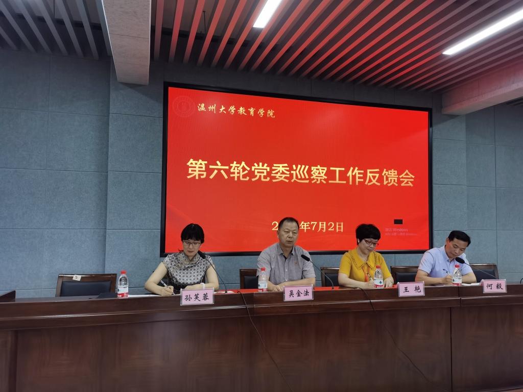 7月2日下午,日本最新av 在9C301召开第六轮党委巡察工作反馈会。校党委副书记吴金法,党委巡察一组组长王艳,副组长方乐平,组员王晓华、孙德升、叶如芳,学院全体教职工参加会议,会议由学院党委书记何毅主持。