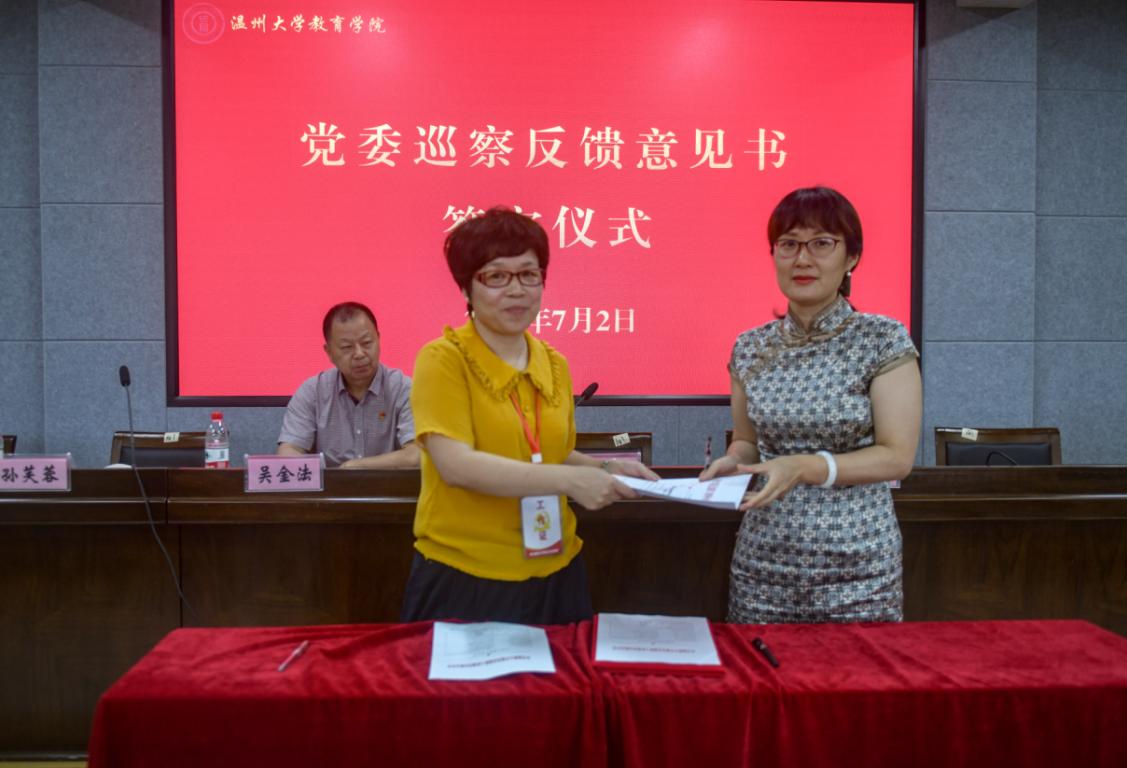 会上,党委巡察一组组长王艳与学院院长、党委副书记孙芙蓉在巡察情况反馈意见书上进行了签字背书。