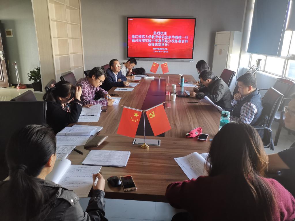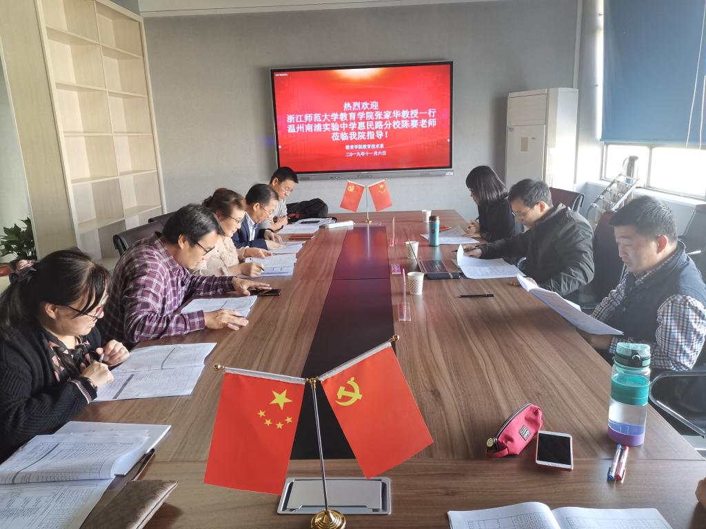 2019年11月6日上午,日本最新av 教育技术学专业召开新一轮专业人才培养方案论证会。本次专业人才培养方案论证会很荣幸地邀请到浙江师范大学教育技术学系主任张家华教授、王小明教授和南浦实验中学教育集团温州市信息技术骨干教师陈赛老师莅临日本最新av 指导。我校的教师教学发展中心主任王佑镁教授、日本最新av 叶新东副院长及教育技术学系的全体教师参加了本次专业人才培养方案论证会。