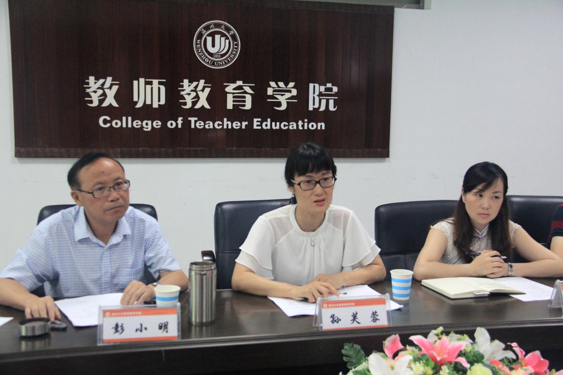 温州大学教师日本最新av 与温州市职业中等专业学校合作项目启动仪式于2018年6月6日在南校9号楼410会议室召开。仪式由该项目总负责人彭小明副院长主持,参加启动仪式的还有教师日本最新av 院长孙芙蓉、学院副书记杨丽君,学前系副主任杨婧,温州市职业中等专业学校校长黄威、教师发展主任来华、学部主任吕媚媚,以及拜师学艺的学员与导师共40余参加会议。
